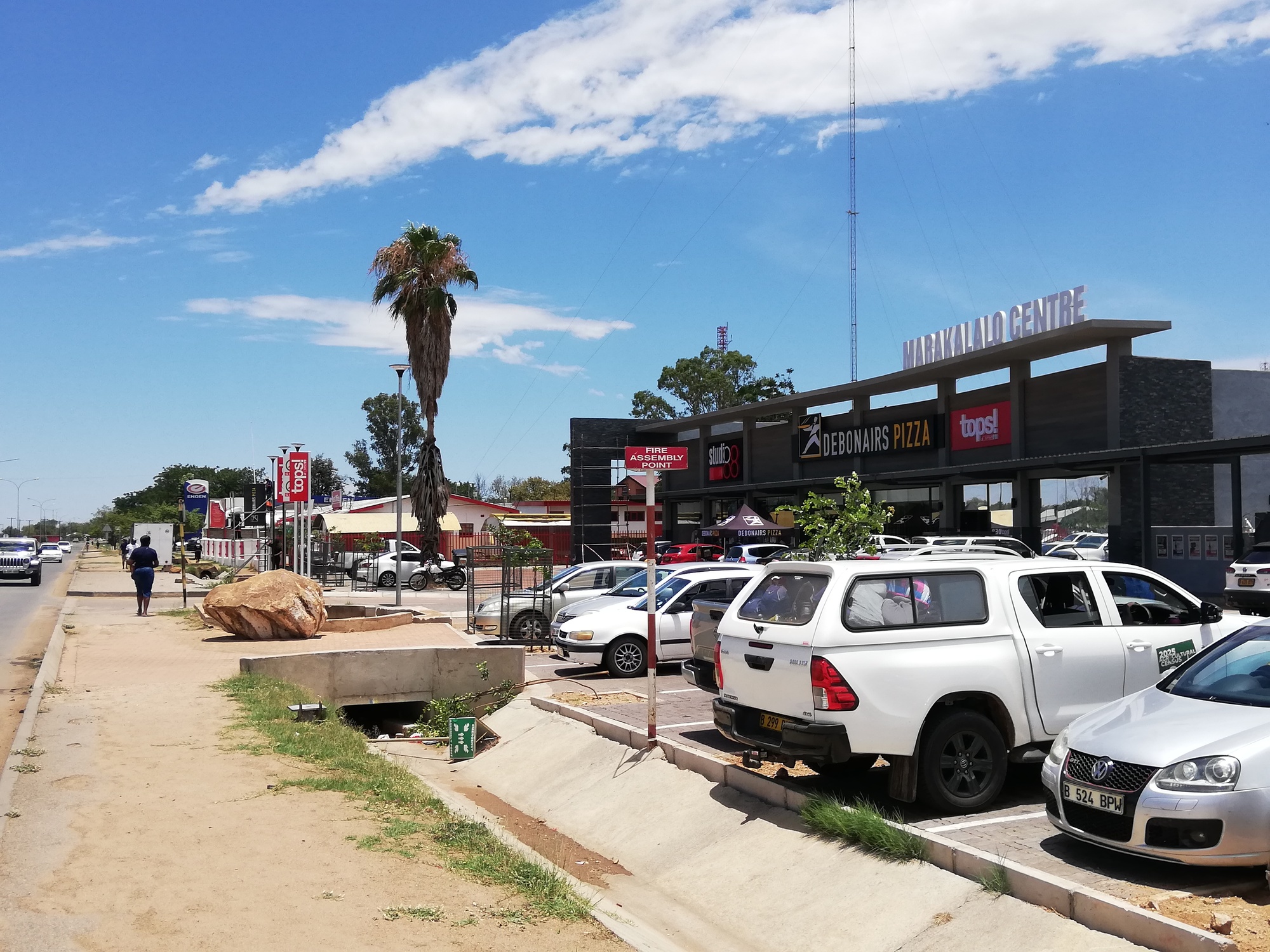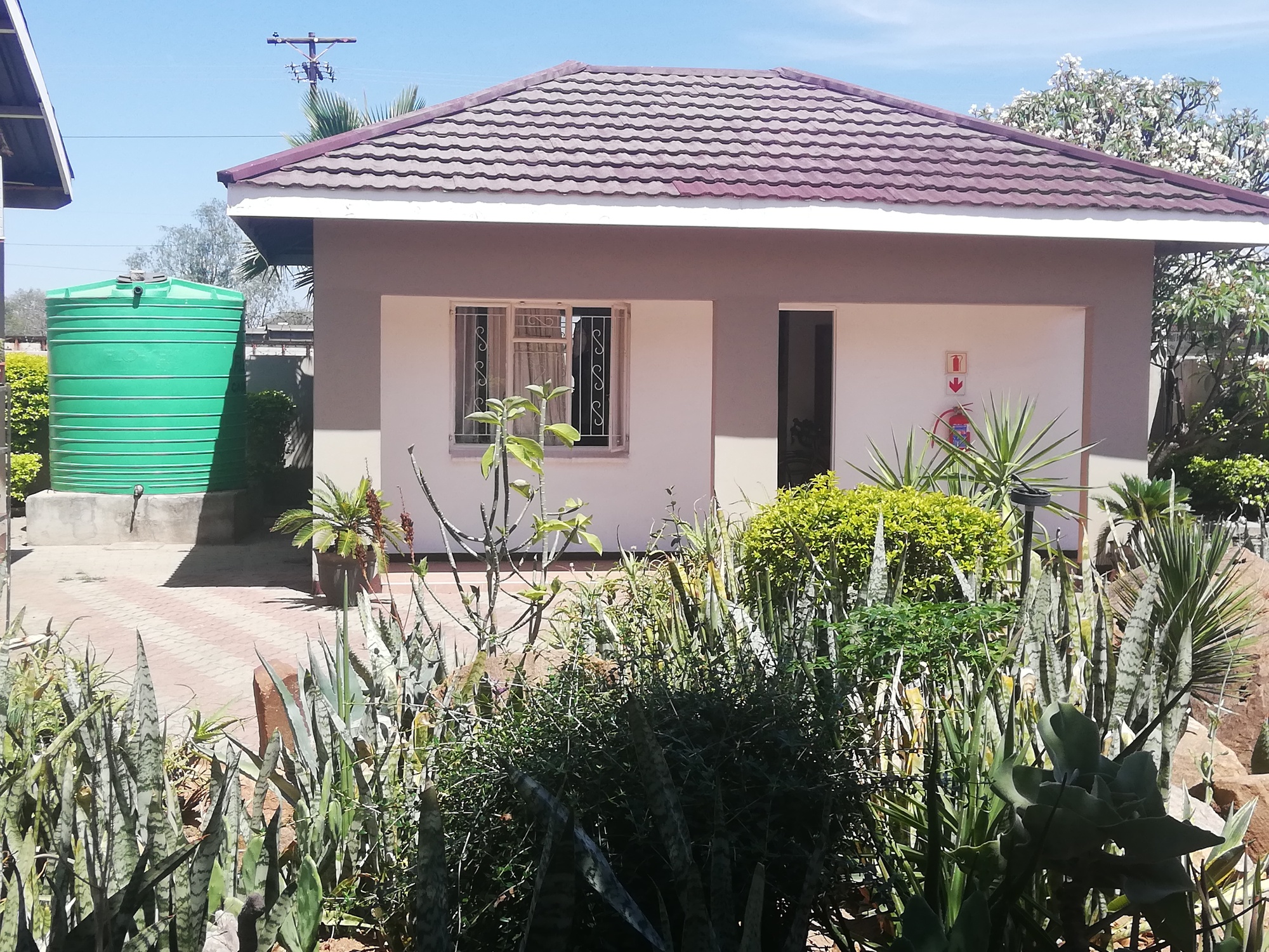 I got to Mahalapye just after midday and found another small town, lightly populated, getting on with the day. There were more supermarkets than seemed necessary, and I spotted the local Choppies and Spar, making note of how far they were from Tshibo Lodge, where I had booked a room for the night. My room was actually a very tidy and well equipped cottage, set apart from the rest of the blocks, amidst a lovely rock garden.