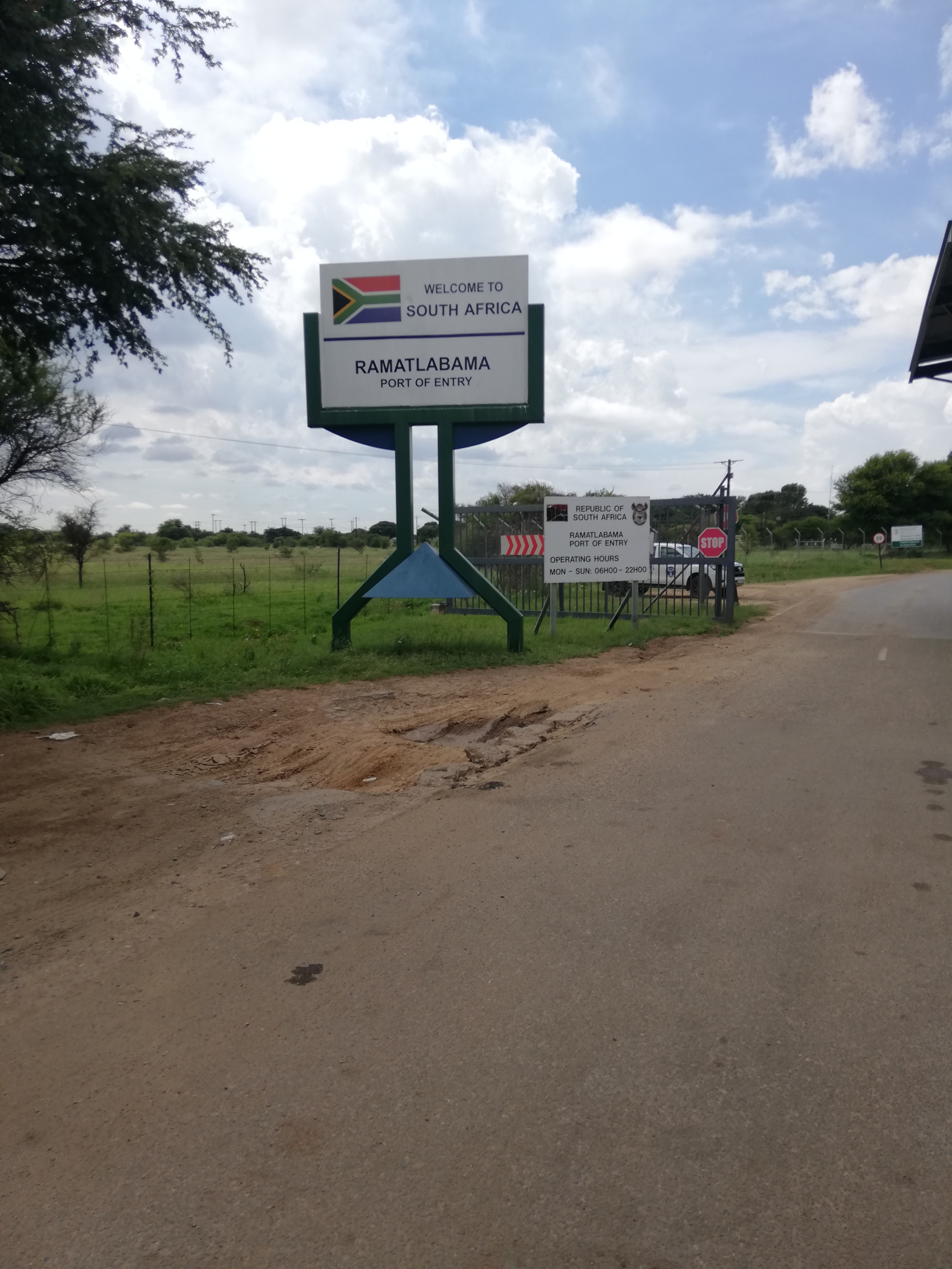 A lovely tail wind assist ensured swift progress was made and I was soon at the Ramatlabama border control Post. My passport was stamped out of Botswana and into South Africa with minimum fuss by friendly border control officers on both sides. I rode between the usual queues of lorries often found at borders, and a soon came across the bold sign welcoming me into South Aftica. It felt good, as always, to traverse into another country by land as I had just done. I changed the remaining g Pula that I had into Rand, at a decent exchange rate, using a "Currency Services" kiosk just after passport control, and was soon on my way on South African roads! My destination was Mahikeng, the closest town to the border 30km away.