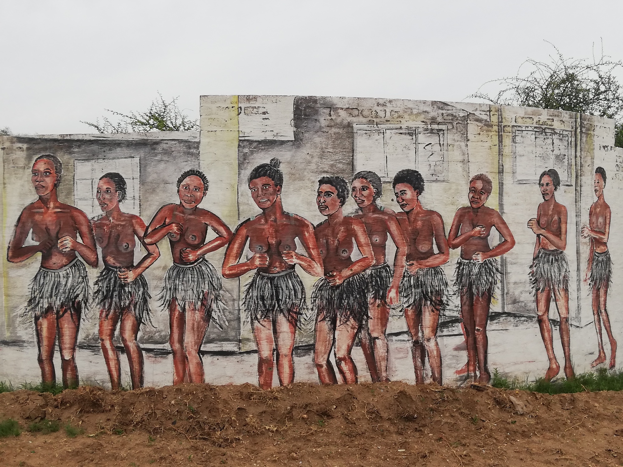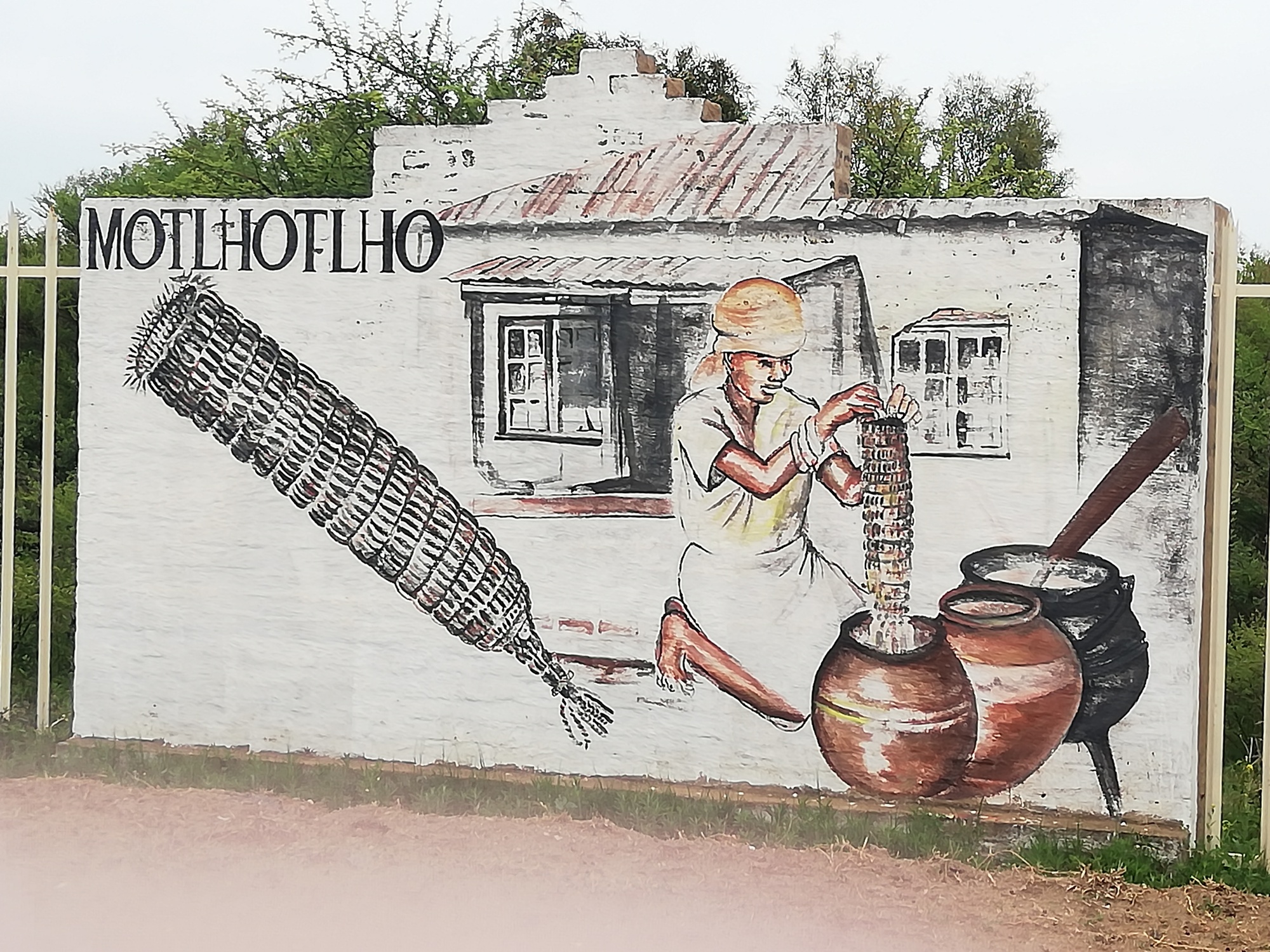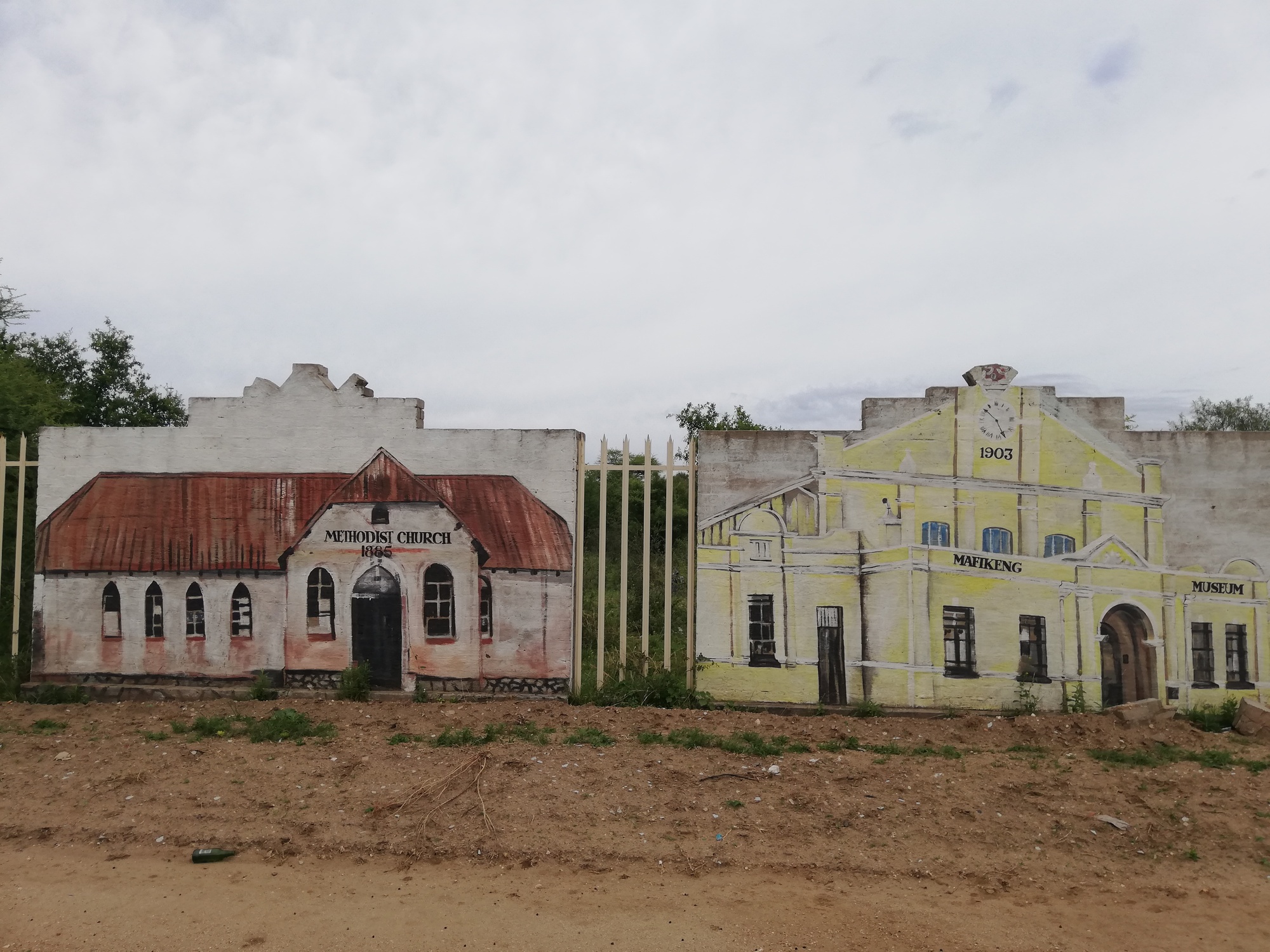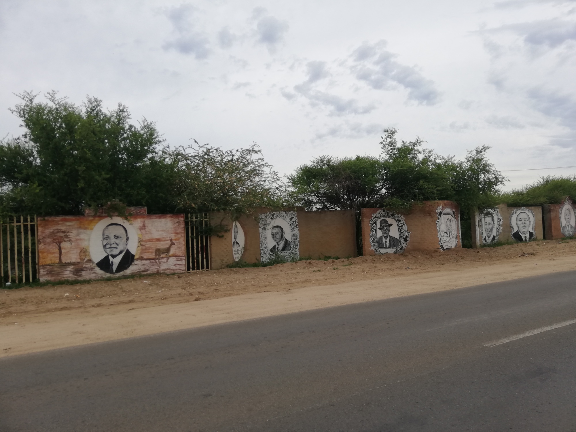 So, all decided, I was up and on the road by 7:30. The N18 is the highway I will be taking as far South as I can, before veering South West at some point in a few weeks time. On the outskirts of Mahikeng, I came across some lovely murals which I stopped to admire. The paintings depicted different aspects of traditional life in Aftica, as well as some impressive portraits of ordinary people, and colonial buildings.