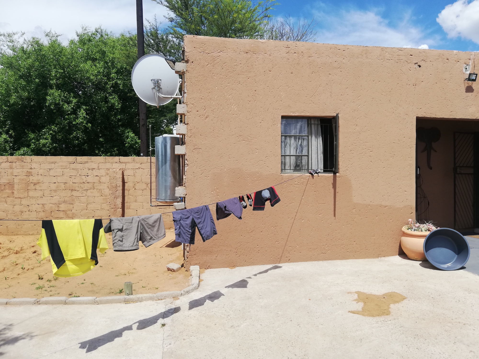 I had a moderate head wind all day today, plus some undulating terrain to deal with, so I was glad to ride into the tiny village of Setlagole by midday. The village was spread over an area about 2km long the N18, and the main hub of activity was centred around half a dozen small shops scattered around a petrol station at a junction where I was to turn left. My home for the night was Setlagole Farm Guest House, which was a charming and well decorated establishment run by Pauline and her Mum. My room was at the back, where it was cooler and quieter with a lovely breeze blowing through my open windows. I hung my laundry out to dry in the hot afternoon sun and settled down to do a crossword. Needless to say, I dozed off.