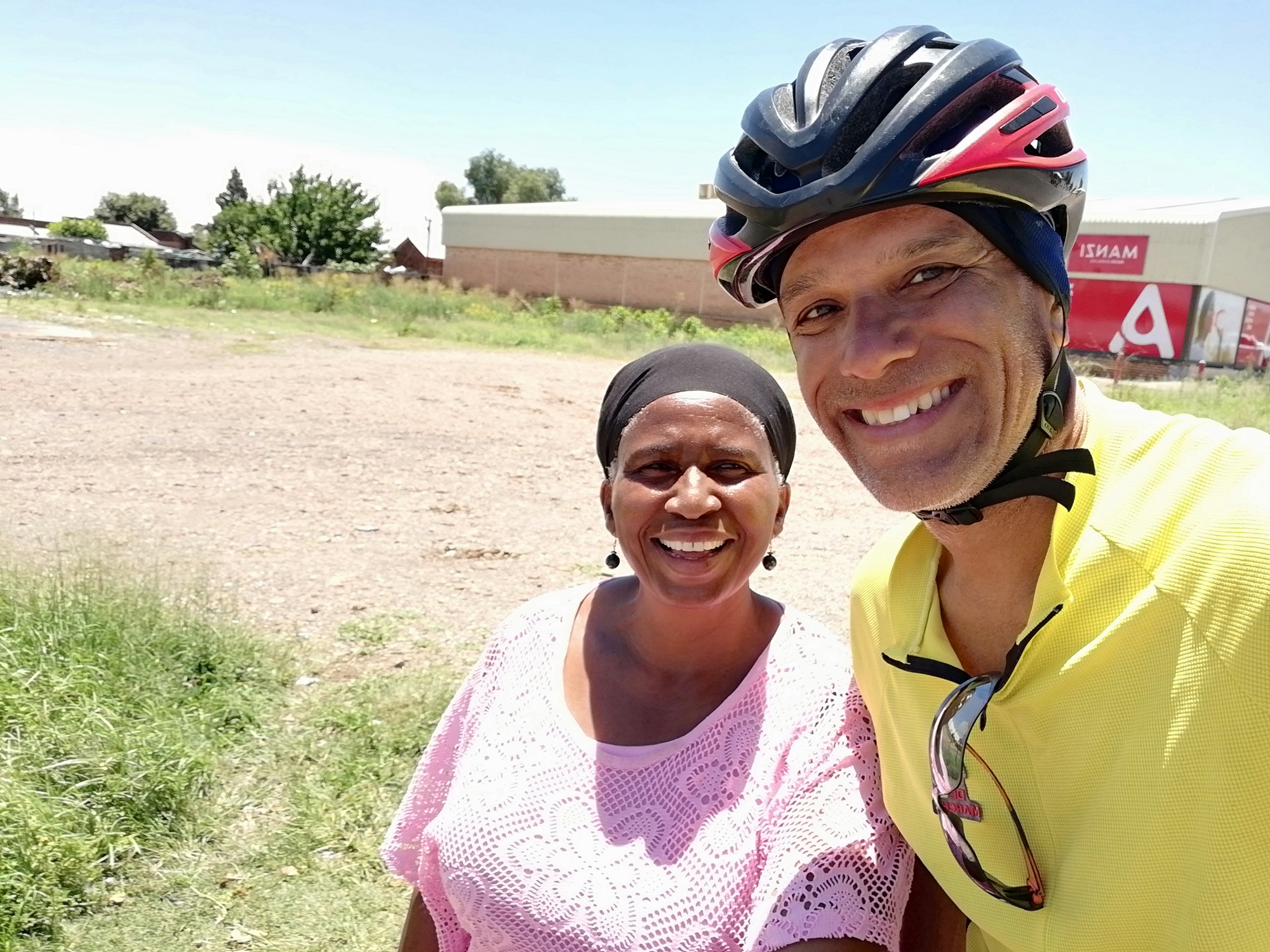 As I rolled into Vryburg, I stopped to take a couple of photos of the main street and main shopping mall. Shopping malls seems to be the flavour of the day in South Aftican towns so far. "Hello Sir! Where are you from?", a voice called to me. I turned to face an elderly woman with a shopping trolley. Her name was Doreen. We got talking and I instantly took a liking to her. She had children and grandchildren and was happy to tell me all about them! Then she told me something disturbing... A few weeks ago, she was attacked by a man with a knife. Doreen told me how she taught this man a lesson by biting into his face with all her might! "My jaw just locked like steel", she said with a smile, "And he screamed and begged me to let go!" The man fled the scene, and Doreen was miraculously unharmed, and she insists he will be easy to identify because of his facial disfigurement! "I am on the front page of the local paper because of this attack!", she said proudly, "You can get a free copy from that petrol station there!" Violence against women is rife in South Africa. Last Friday, in an act of unity and defiance, women across the country refused to work, in a bid to raise awareness of feminicide. Doreen was proud to be a woman in South Africa, and good on her, I say! We chatted some more, and eventually got talking about Kujali, our family charity. Doreen gracefully presented 50 Rand as a donation! I was stunned. I promised that I would make the donation on her behalf, as I couldn't bring myself to take this poor elderly lady's money. She said a short prayer for me, wished me well, and we went our separate ways.