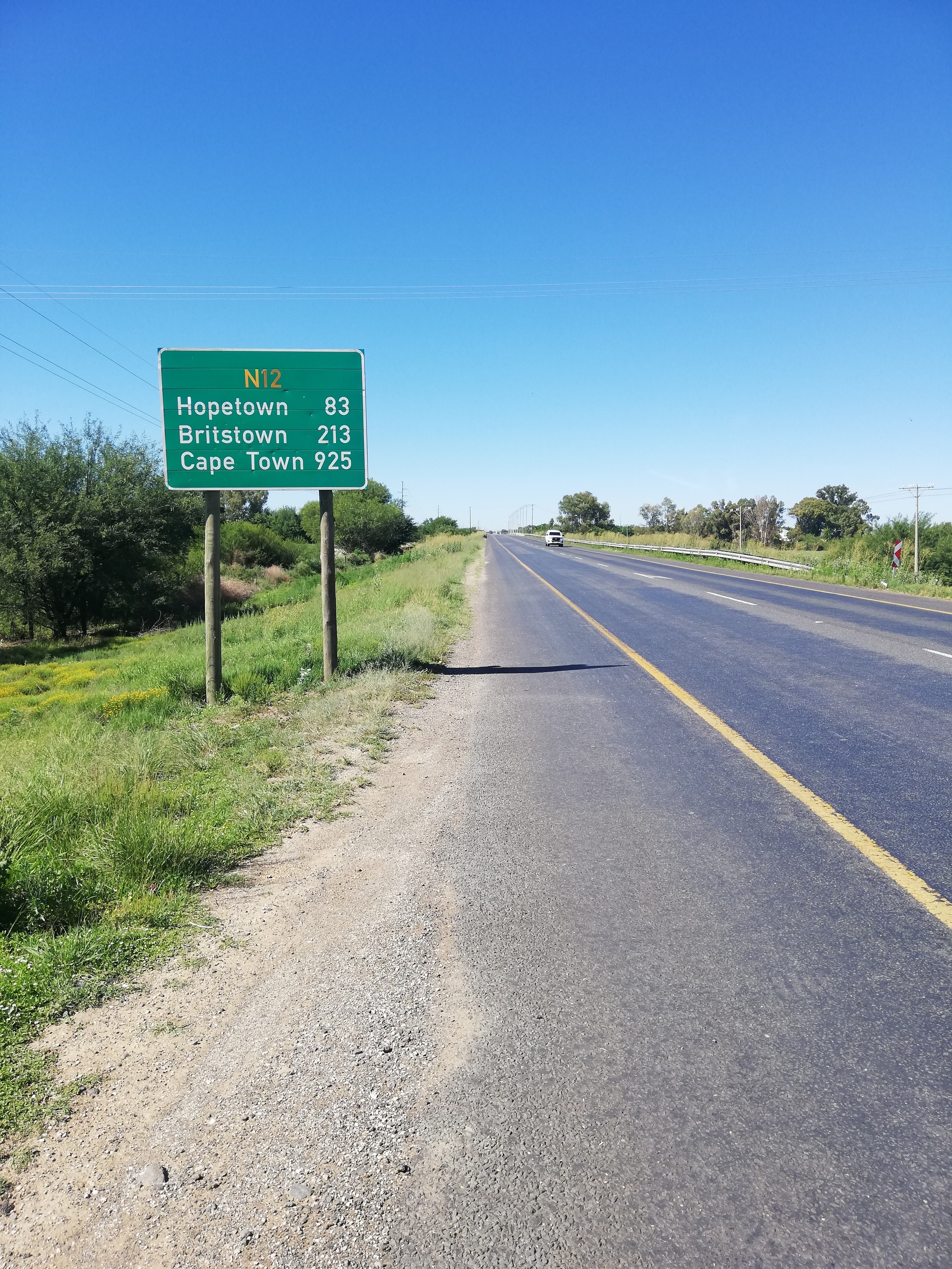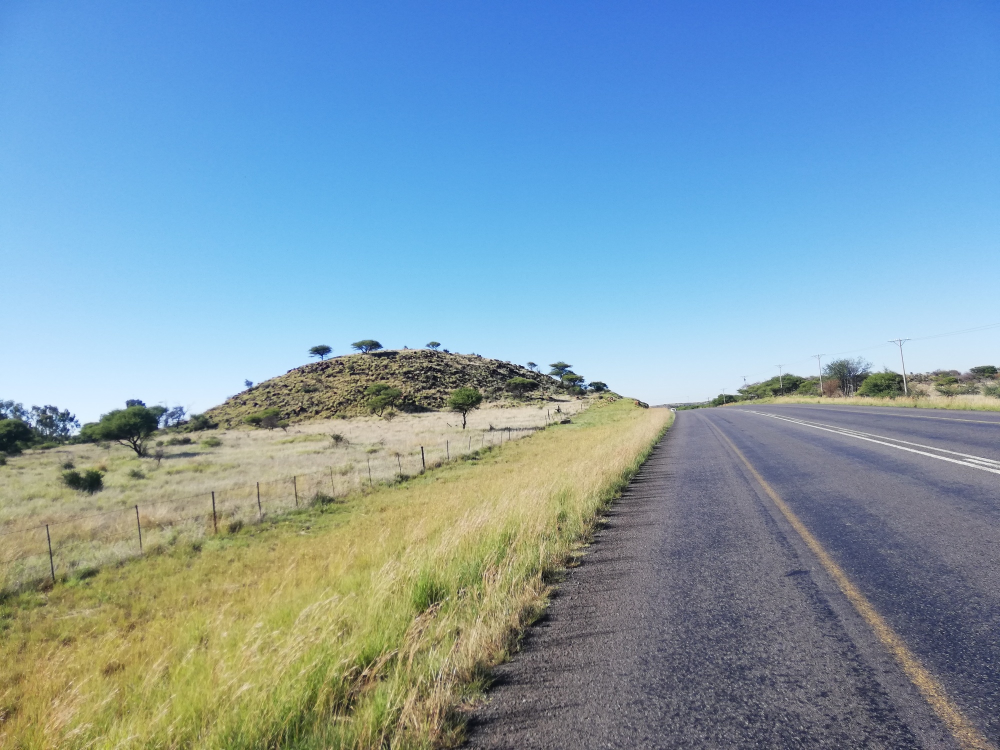 After a rest day I was ready to get back on the bike and head out of Kimberley. I had a long day planned so was grateful for a delicious omelette to compliment my fruit, porridge and coffee. I was soon out on the N12 and that familiar landscape soon re-apeared. But at some point today, that landscape was due to change...