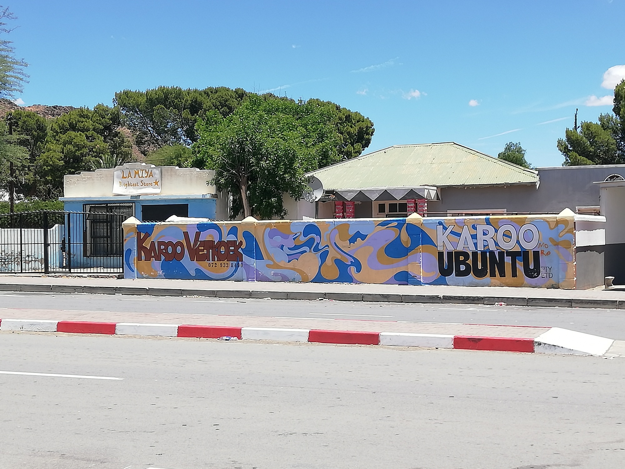 After breakfast, I went for a morning stroll. Victoria West is a small town made up of about 4 parallel streets, with small shops, a couple of local restaurants, a couple of churches, an impressive cemetery and a Spar Supermarket. Many walls are adorned with colourful art, adding to the town's character and charm. People are friendly and curious, asking me where I am from and what I am doing in their part of the world. They don't see many tourists around here, so I am a novelty and celebrity at the same time.