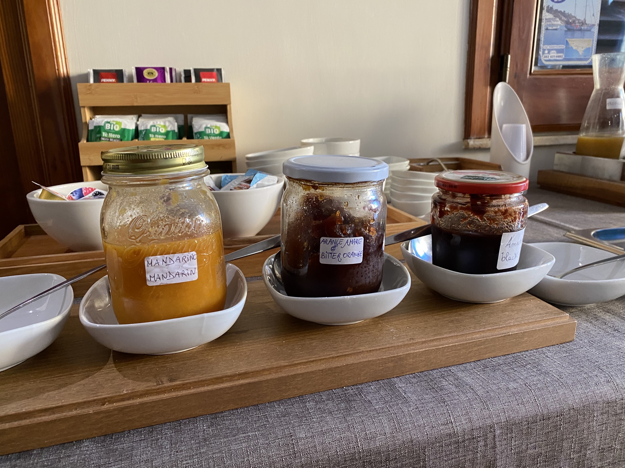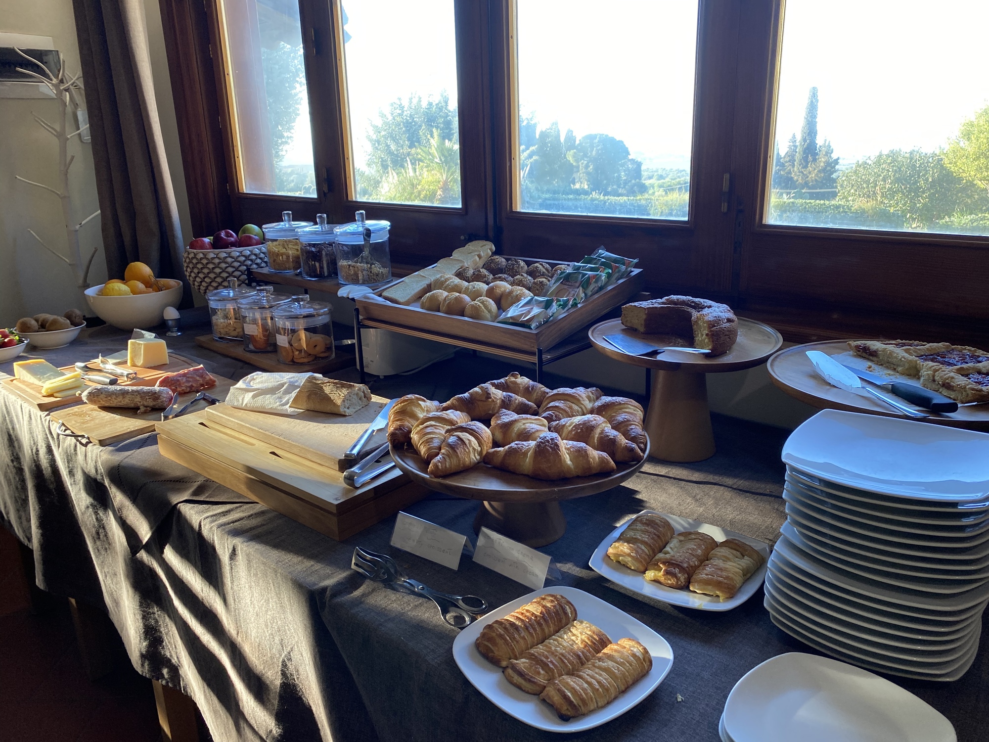 Villa La Lumia offered an excellent breakfast buffet, the best so far. Of course, when we stayed at the small places, we were often the only guests or fully half of the total, so we wouldn’t expect a buffet. In any case, we enjoyed it.