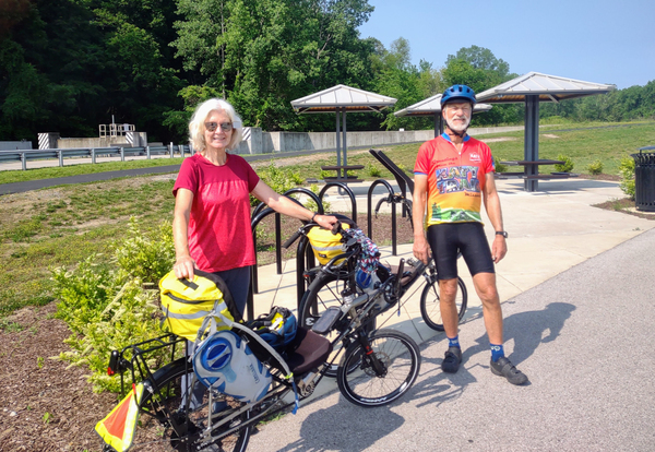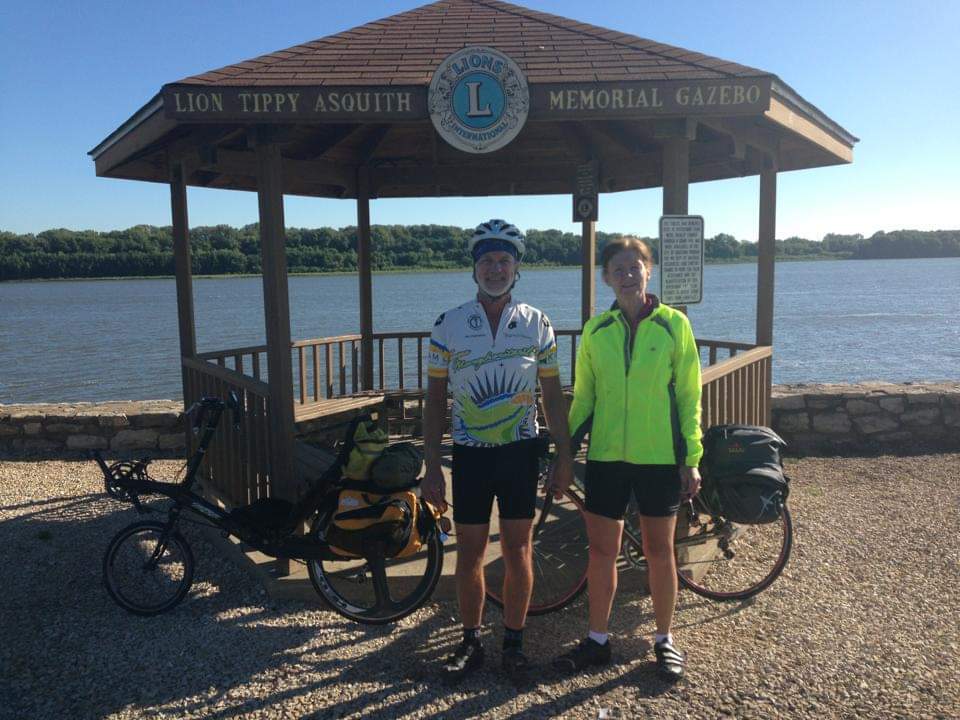 My husband Barry and I did our first experimental bike tour in 2013, an overnight from Louisiana Missouri to Mark Twain Lake and back. I rode a Trek touring bike, he was on his beloved Lightning R-84 recumbent. The trip ended 15 miles short of the finish when I hit a rock, went over the handlebars and broke my clavicle. I looked at Barry's bike and figured if I had one like that and fell off, it would be less likely to end the trip.
