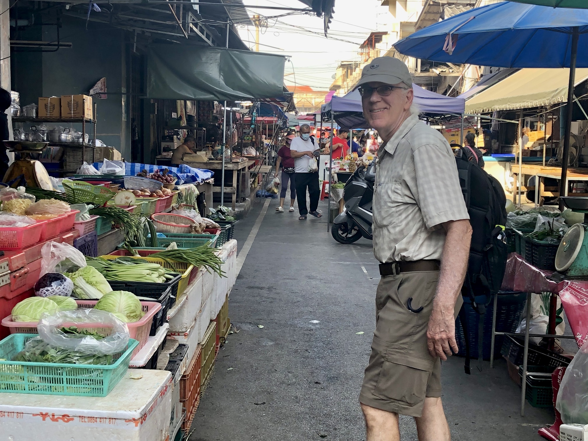 The next day we went out early to ride around and see a bit more of Ayutthaya. The inner part of this town is a bit low rent and working class, the market one of the roughest we’ve seen since Cambodia and Myanmar. But we picked up the peanuts and laundry detergent we needed and had 12 baht (32 cents) coffee at a very nice lady’s stand. People are very friendly and polite, the pandemic didn’t do this tourist-oriented town any favors and I think we’re going to see more evidence of that in the weeks ahead. We’re glad to be here.