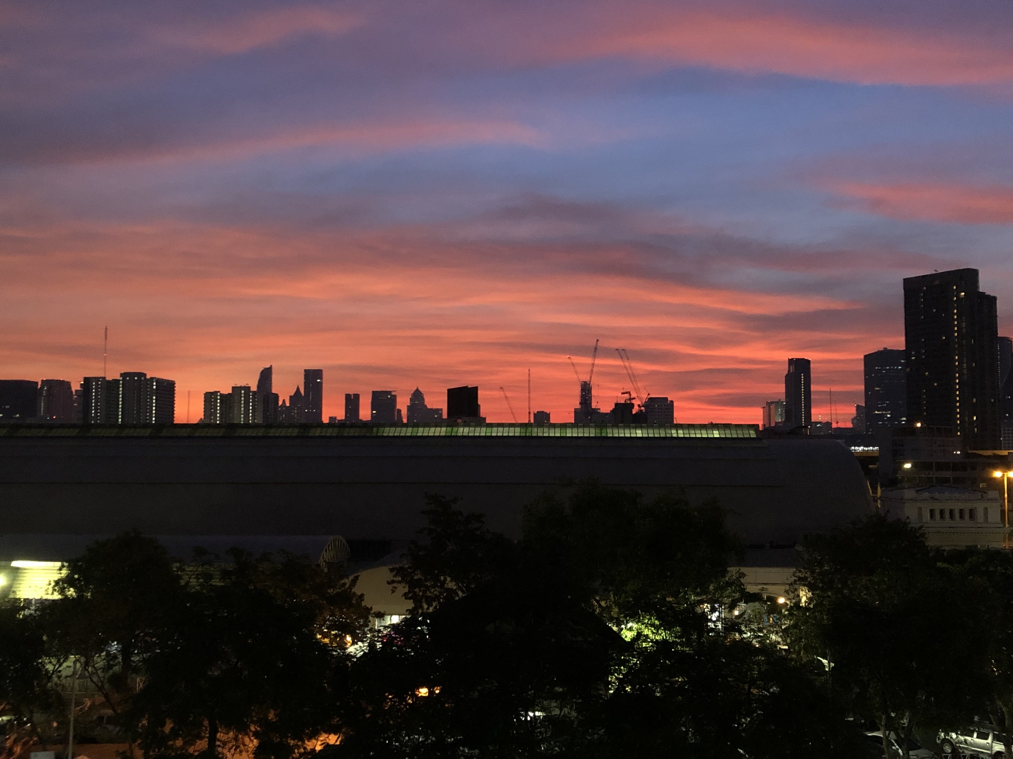 There is a night market right by the main temple entrance and we found ourselves some yummy food there and ate at a little table. There are definitely foreign tourists in Ayutthaya, but most of the folks were Thais. At 6 pm and 8 am on the dot, all over Thailand loudspeakers and TV and radio channels all play the national anthem. This happened at the night market but this was the first time in many years that we saw everyone milling through the market come to a halt during the anthem. Just like the old days.