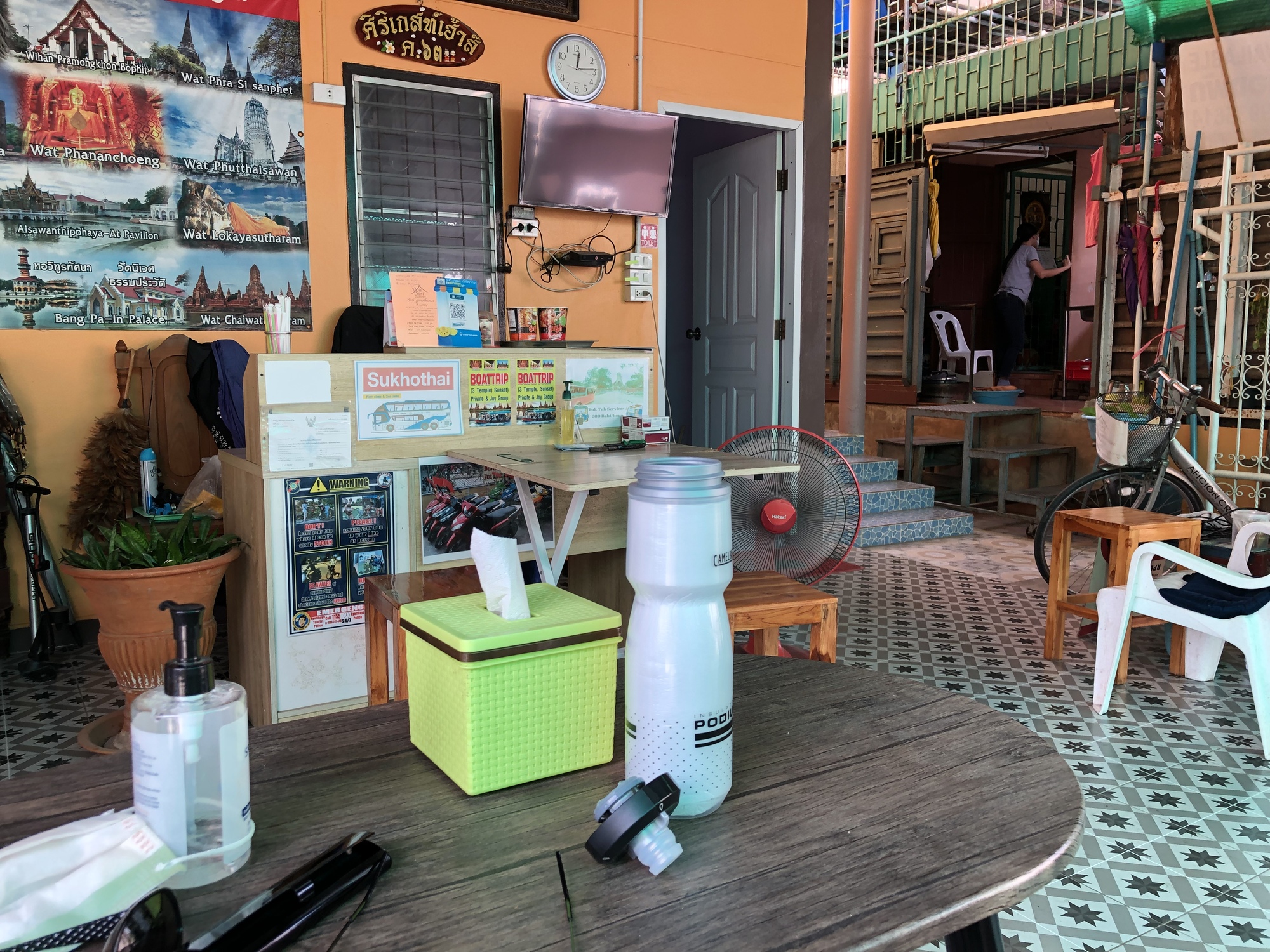 Once the train stopped in Ayutthaya, boarding local guys helped us sling our gear outside and we put ourselves back together and headed to the Siri Guesthouse. This was a nice little place, our room was sweet and had everything we need. Birds called constantly outside and it was great to be out of the massive megacity.
