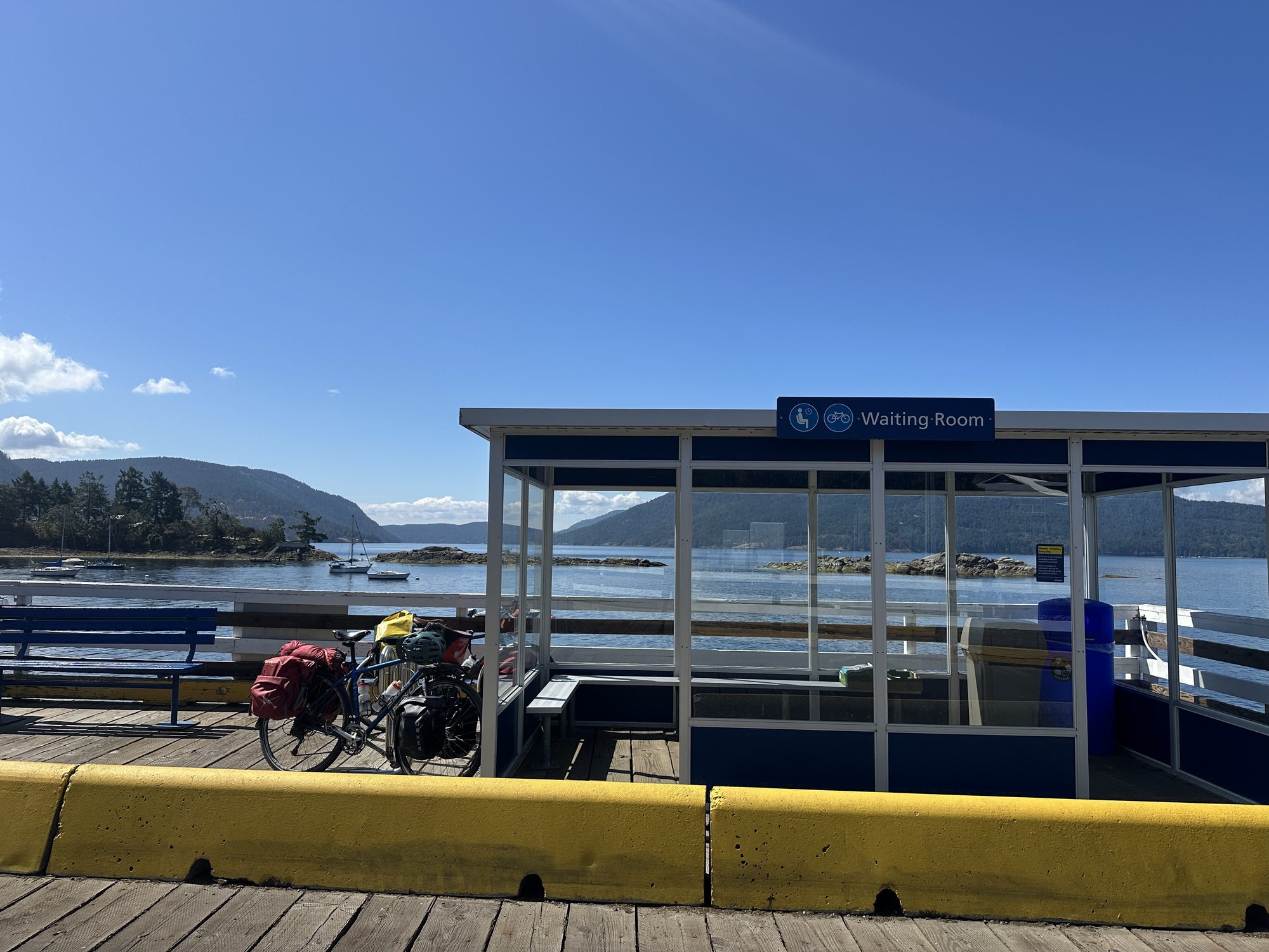 We had a coffee and some pricey market pastries -- we had made good time into Ganges, and only had a handful of kilometres to the ferry at Vesuvius. Once restored, we headed off to Vesuvius, where the ferry would take us to Crofton on the mainland. The road was tight, and the traffic bunched up behind us. I noticed a sign pointing out a quite back route for cyclists to Vesuvius, so we veered off. As it turned out it involved a number of 10-14% hills -- I'm not sure it was designed by anyone who had ever ridden a bike on it, and we felt we might have been better off taking our chances with the traffic.