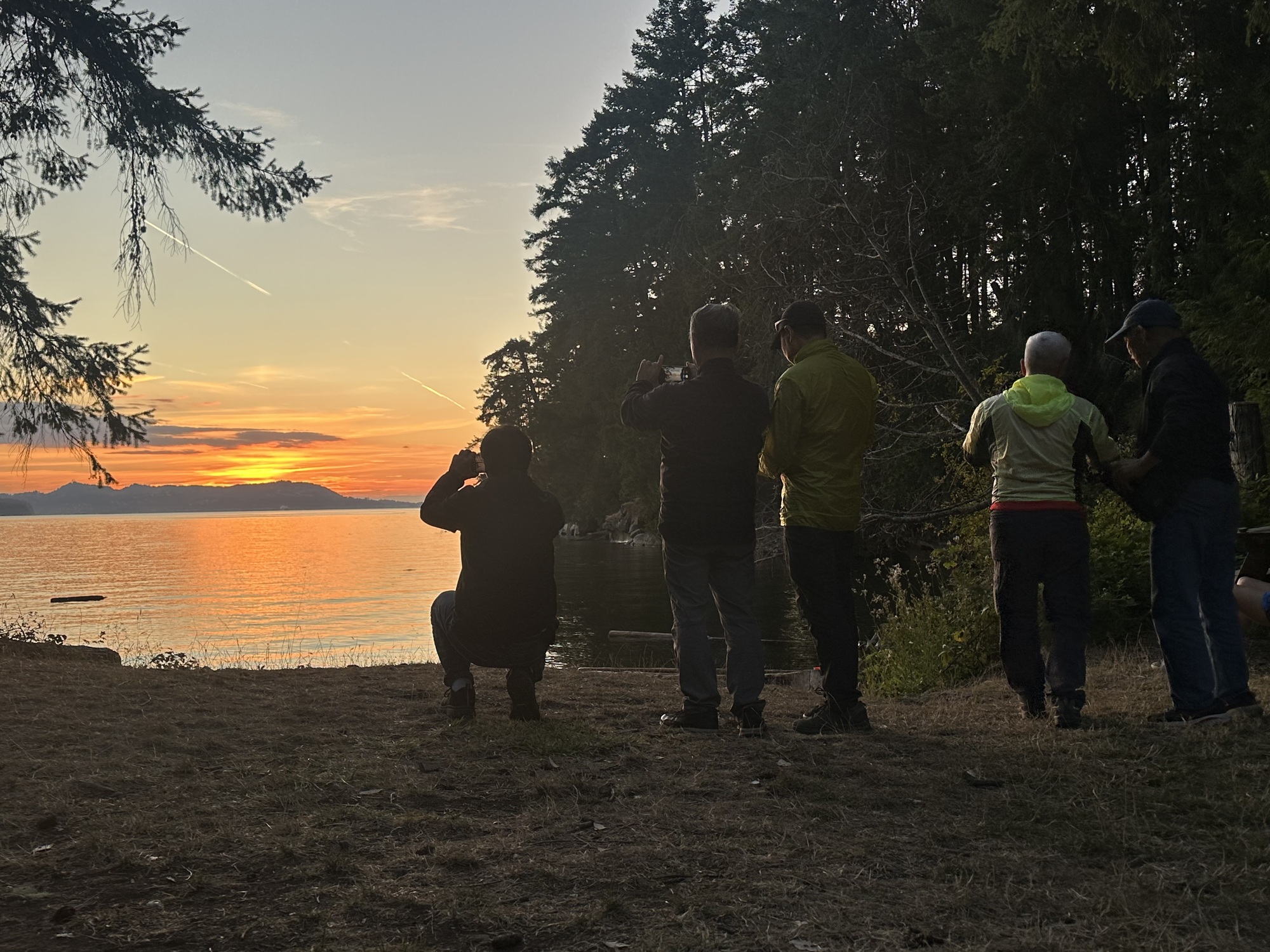 We ended up getting an earlier ferry than we anticipated, found our reserved spot at Descanso Bay Park, and headed into the main commercial area in Gabriola in anticipation of getting pizza and beers at the local pizzeria. Well, without reservations on a Saturday night, that was an hour and a half wait, so we hit the cold beer and wine store for a 4 pack, got some noodles and chicken at the grocery store and went back to the campground to watch the sunset.