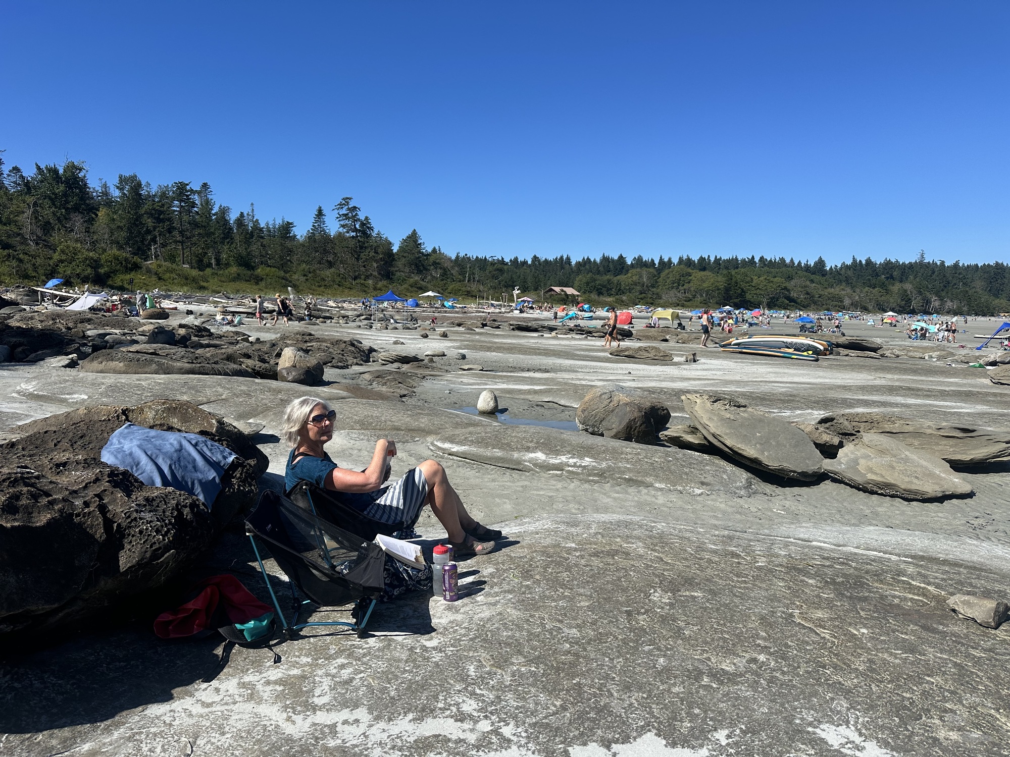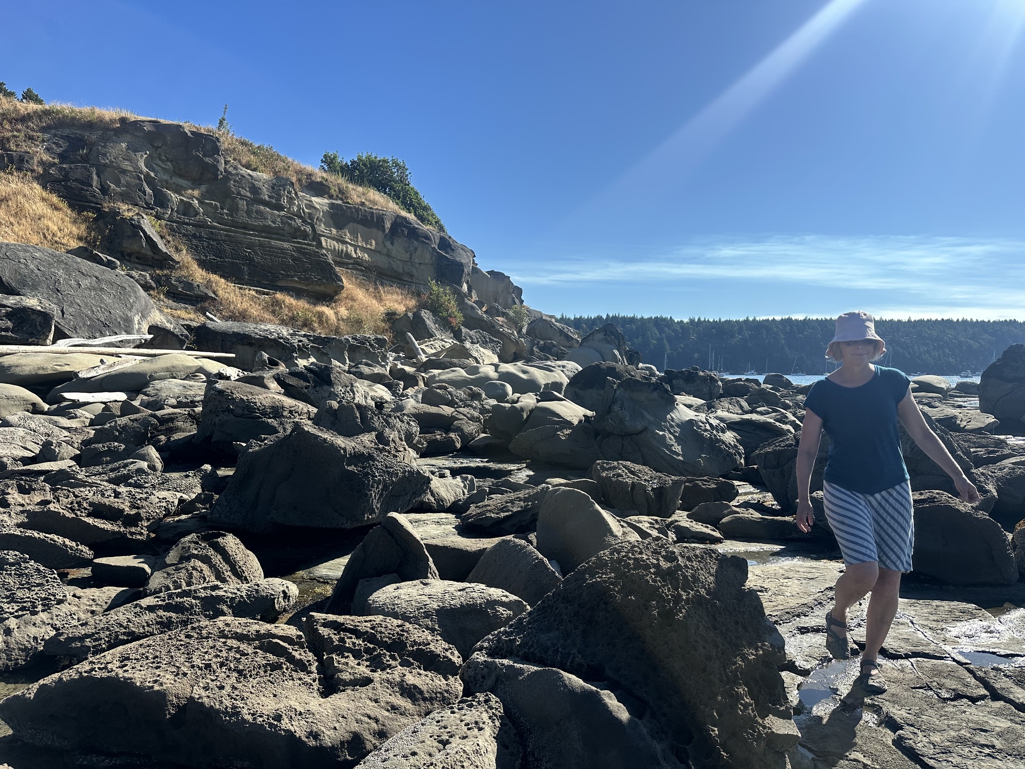 That ideal of the offbeat paradise was a little harder to find on Tribune Bay amid the throngs of beachgoers, but we had a great, relaxing day off the bikes nonetheless. We pretty much spent the whole day moving from sun to shade and back to sun on the beach, depending on how scorched we were feeling. We rambled around on the rocks, climbing over a point to the next bay (which turned out to be a clothing optional bay — maybe that’s where the locals go). We watched tiny crabs battle each other in a tidal pool over scavenging rights to a dead minnow.