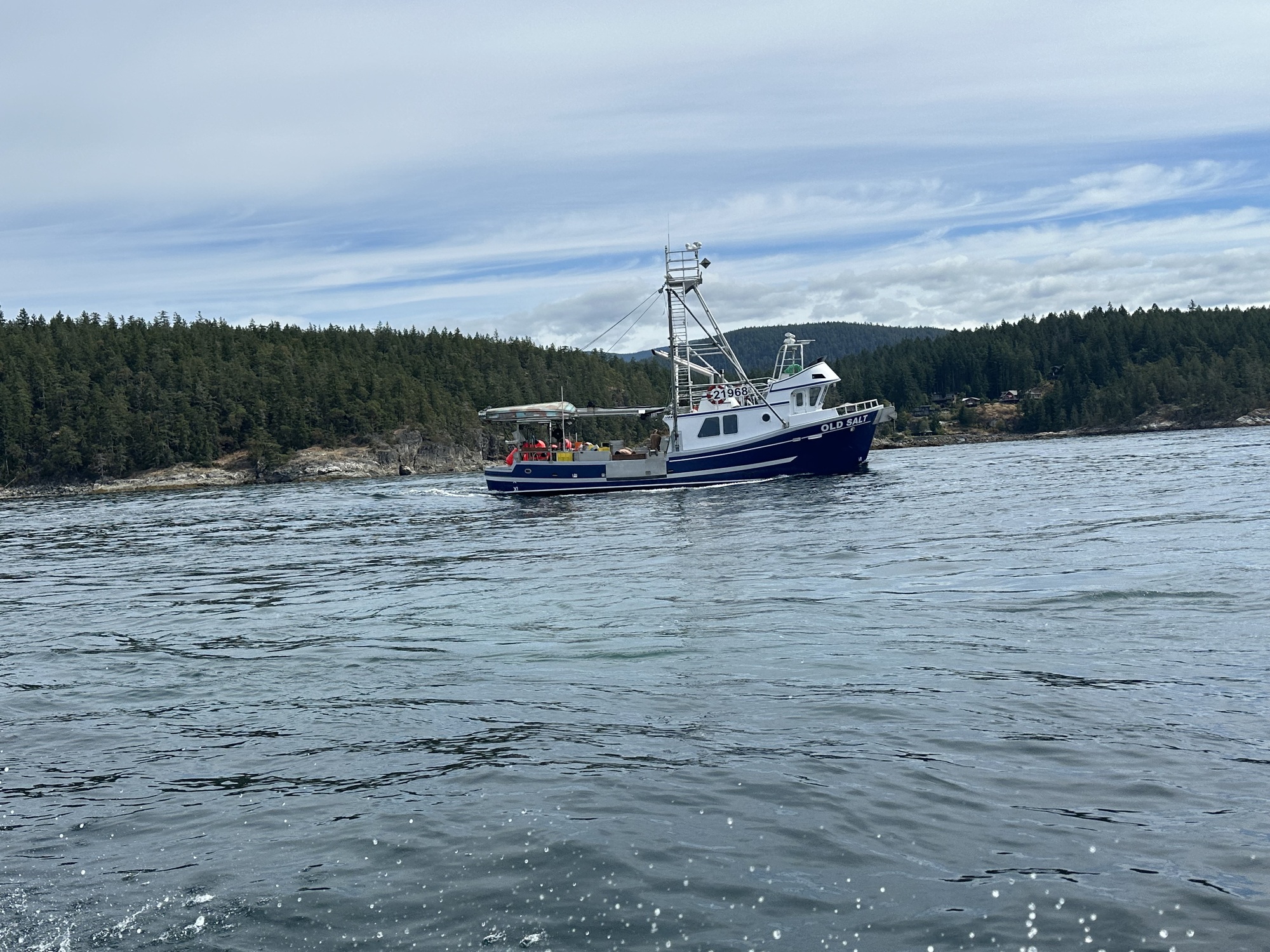 At one point, we had to navigate the wakes of two larger vessels, and Brian skilfully brought us up on one wave crest, surfed forward for a while, then rotated us sideways into the trough. I thought we were goners for a sec as the water line crept perilously up the gunnel on my side, but no, we bounced out through the waves still intact.