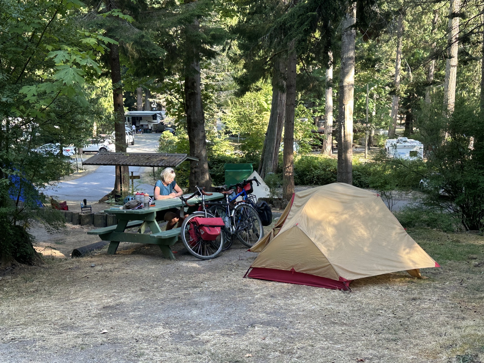 The newer town, which is larger and is closer to the ferry terminal, was where we were headed. We were staying at a campground in the town’s municipal park. It had top notch showers and laundry, which we took advantage of.