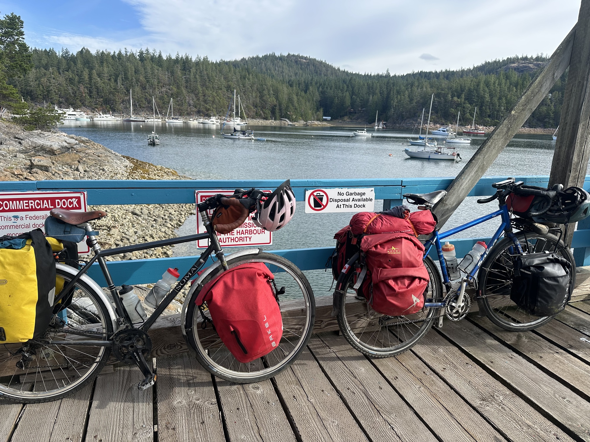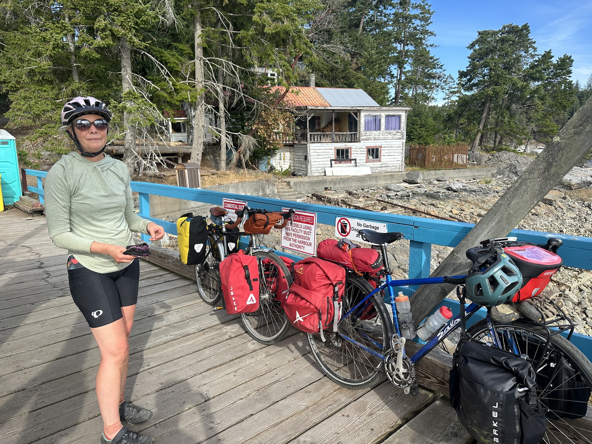 We had arranged pick up at the government dock at Cortes Bay at 10:30. The campground was only 7 km away, so we had a good amount of time to pack up and make the hilly trip to the dock.