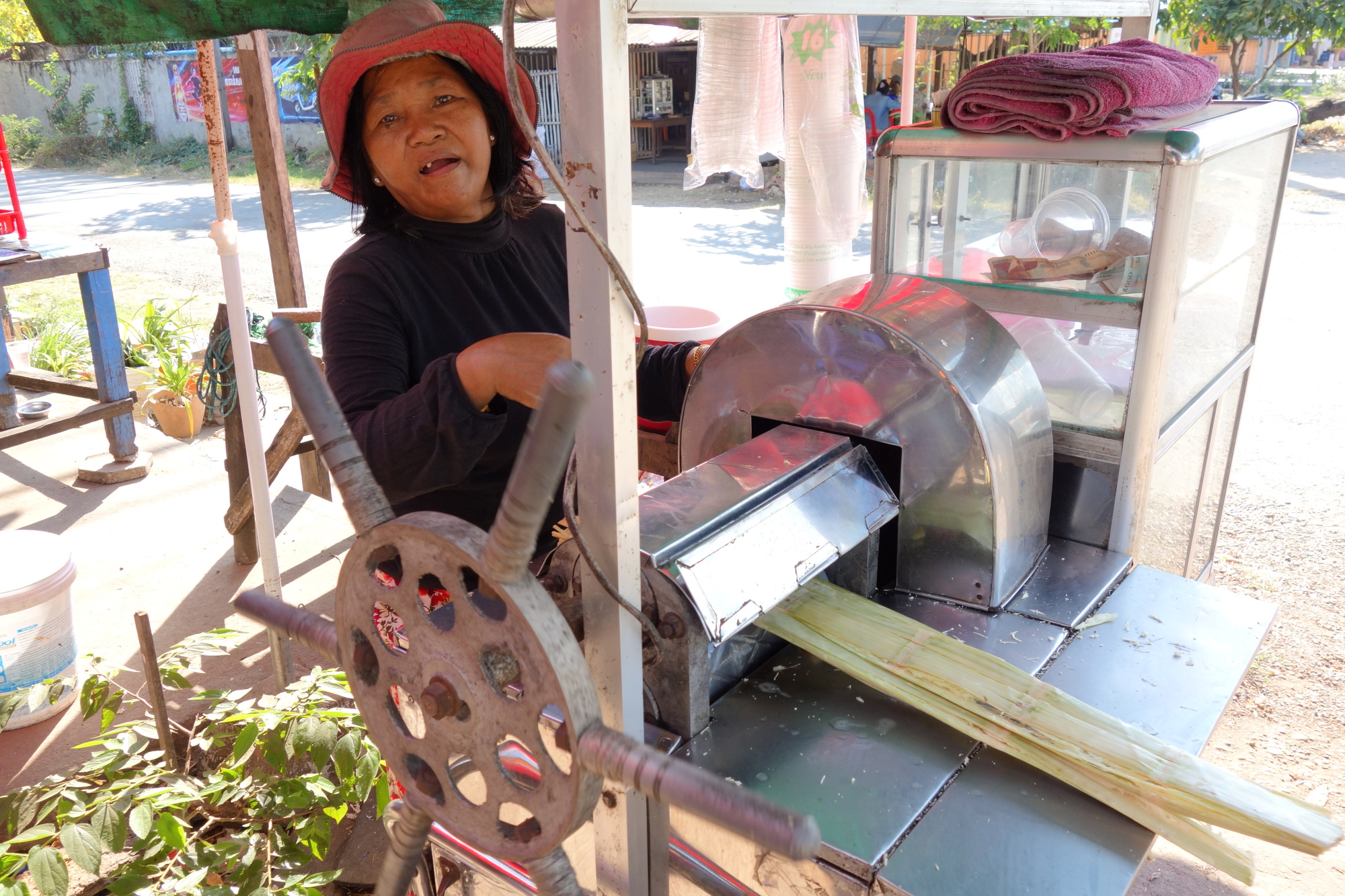Right in time! I was really knackered when I came to her cane juice stall in Stung Treng. I still do wonder what life with just one tooth must be like. I hope it is not a result of drinking that juice...