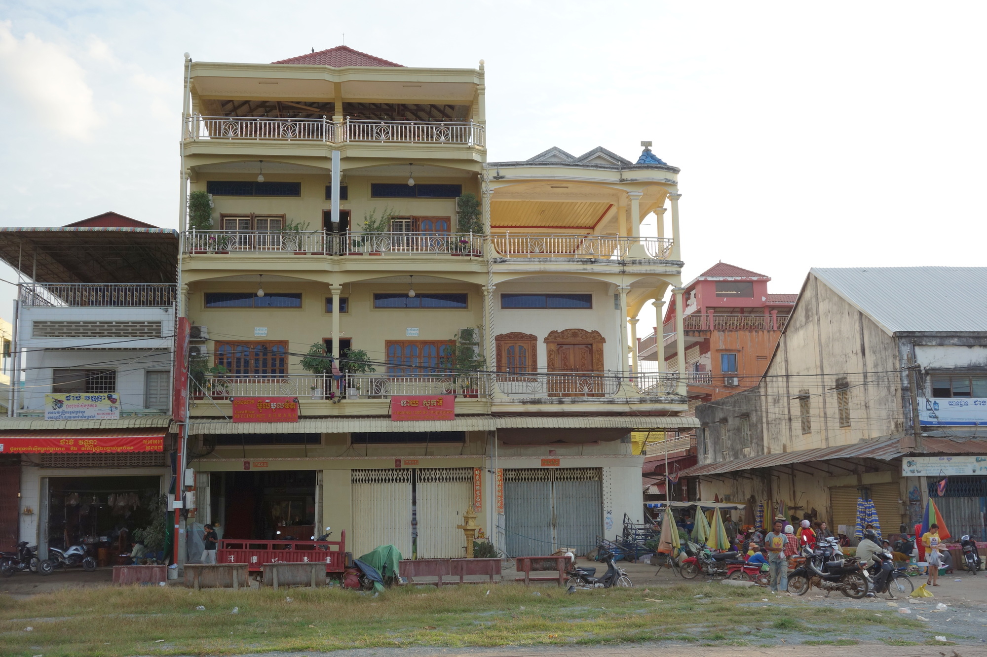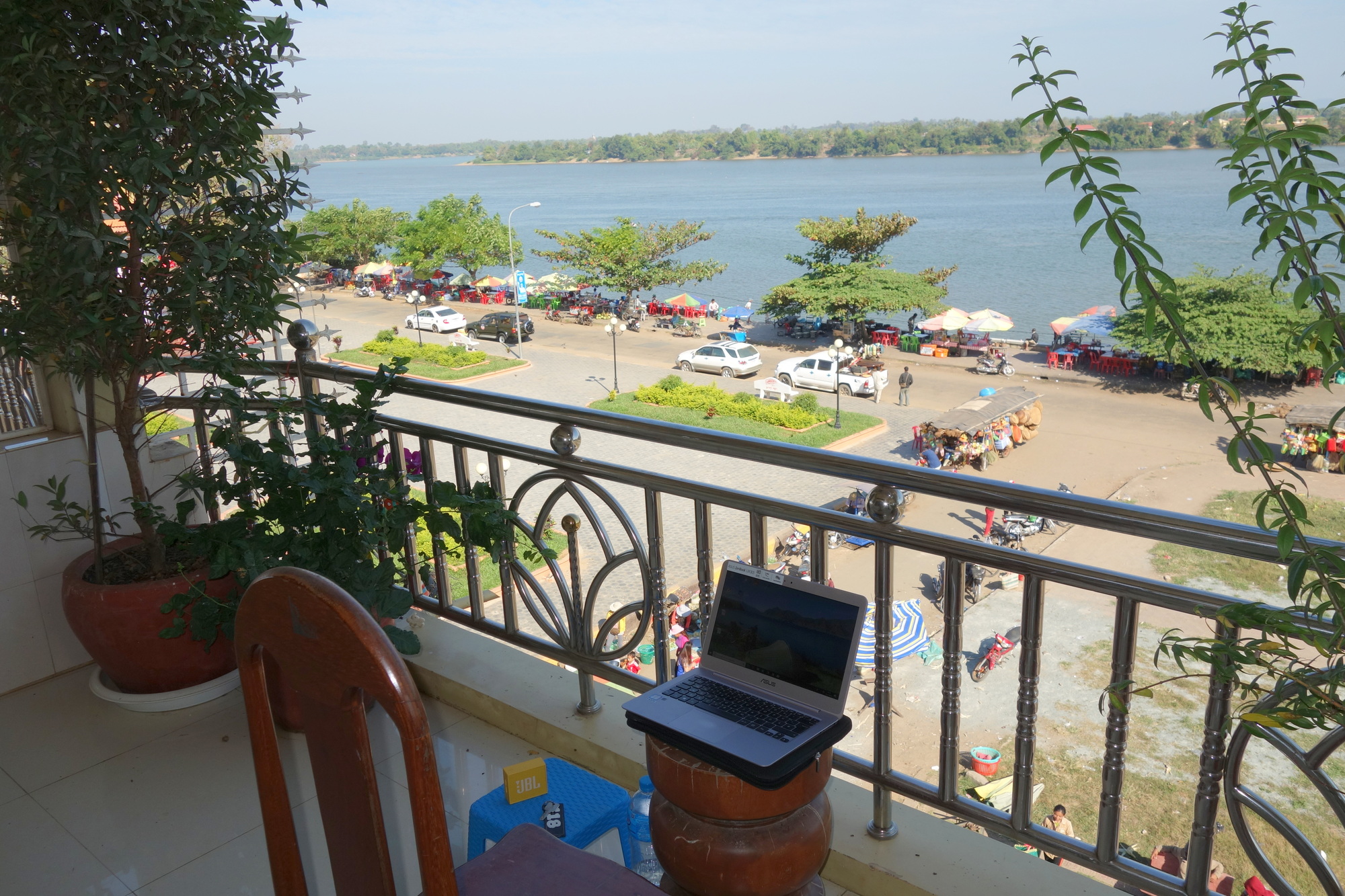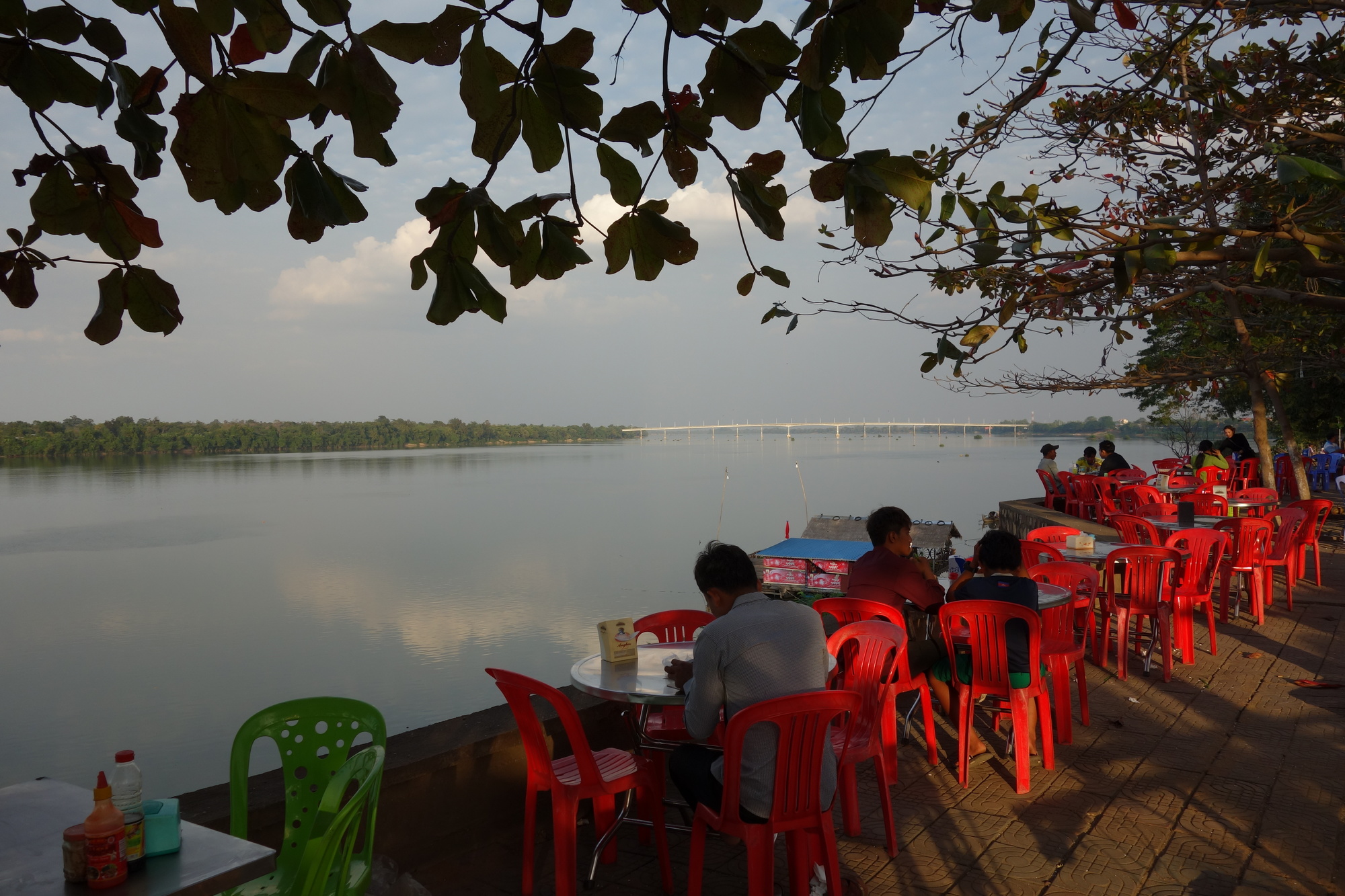 Anyways I made it and hopefully my aching shoulder, wrists and knees will recover while I am staying in Stung Treng for two nights. I quite like the town. It is a pretty filthy place but it has got a real buzz about it. Plenty of little restaurants along the waterfront and the rest of the town is market activities. Finding a decent place to stay is not a problem either as there are heaps of guesthouses and hotels. I picked the Mey Li Mumet Guesthouse as I could see they have waterfront terraces. A normal room is 5 US$, my riverview one 6. I have been to places that have been better kept but I usually do 15 minutes of cleaning in the bathroom anyway. So I am happy here, hoping that was the last real horror ride for this journey.