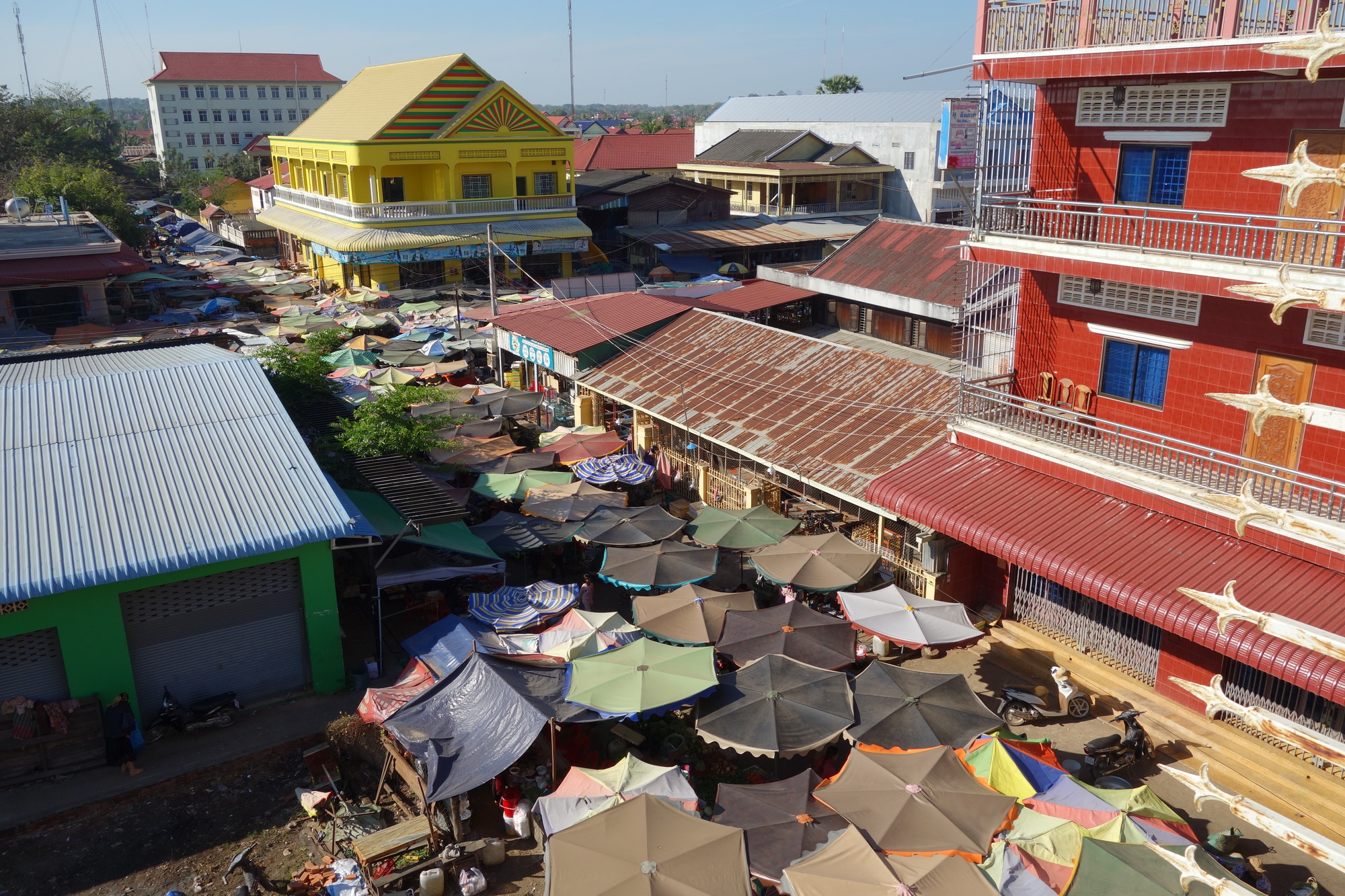 That´s the view from the balcony on the backside of the guesthouse over the endless line of umbrellas. As I said, the whole town is one huge market place