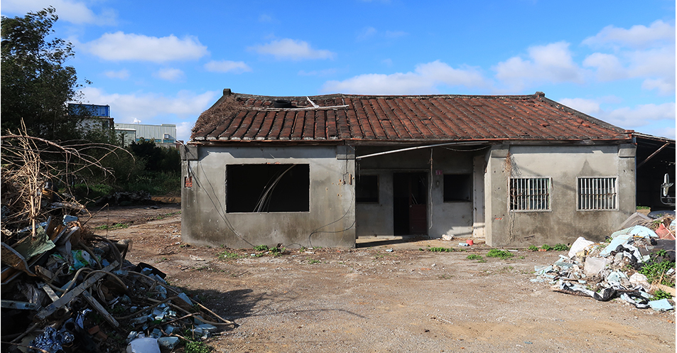 The brickwork has been covered over with cement. The original clay tiles still cover a lot of the roof, but some of it has collapsed and no doubt the rest won't last very long. The are are a few rectangular holes where windows once were and who knows how much longer the house will remain standing.