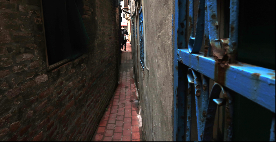 I try using my screen shots to find other places, but after a while we just go on instinct and follow our noses. Some passages are so narrow the bikes won't do down them and I reckon these are referred to as 'gentlemen's alleys' as it was considered rude for men to come into contact with the members of the opposite sex when passing close by. An alternative and certainly more direct colloquialism is 'breast-touching alley'.
