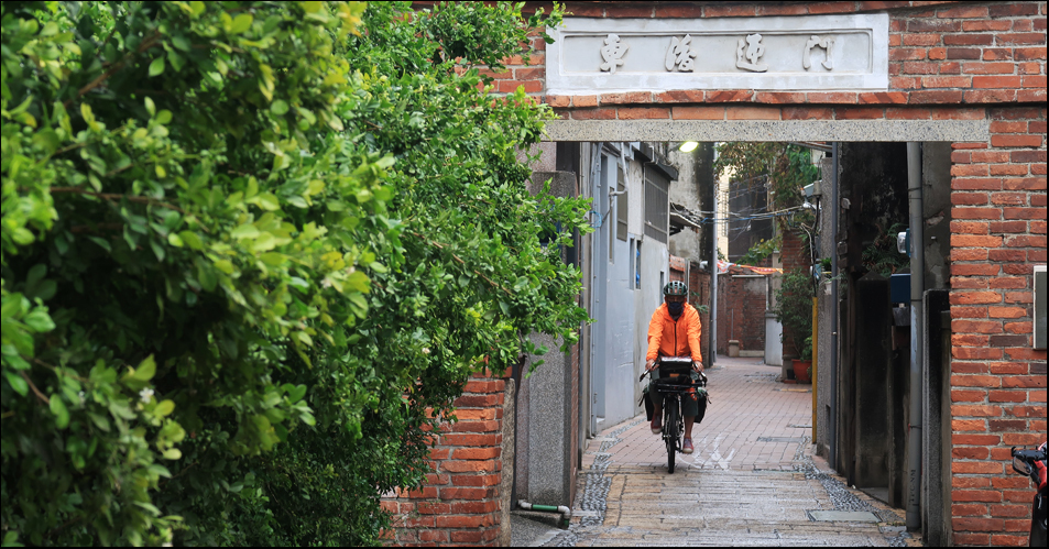 The wide highway-like road continues into an industrial zone and it's eerily quiet with it being a Sunday morning. The only other people around are a few immigrant workers zipping around on electric scooters. We safely ride through red lights.