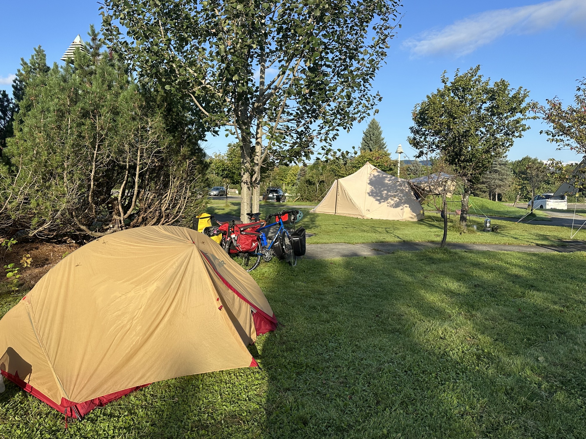 A glider swooped down and landed in a nearby field at one point, which was pretty cool. And eventually we found a way back to the road, and pretty much stuck to a zigzagging route of secondary roads for most of the way to Sapporo. It wasn’t without its frustrations— we had multiple rivers to cross and had to find routes with bike friendly bridges, which entailed a certain amount of backtracking. And all the time there was the energy-sapping headwind and heat to deal with.