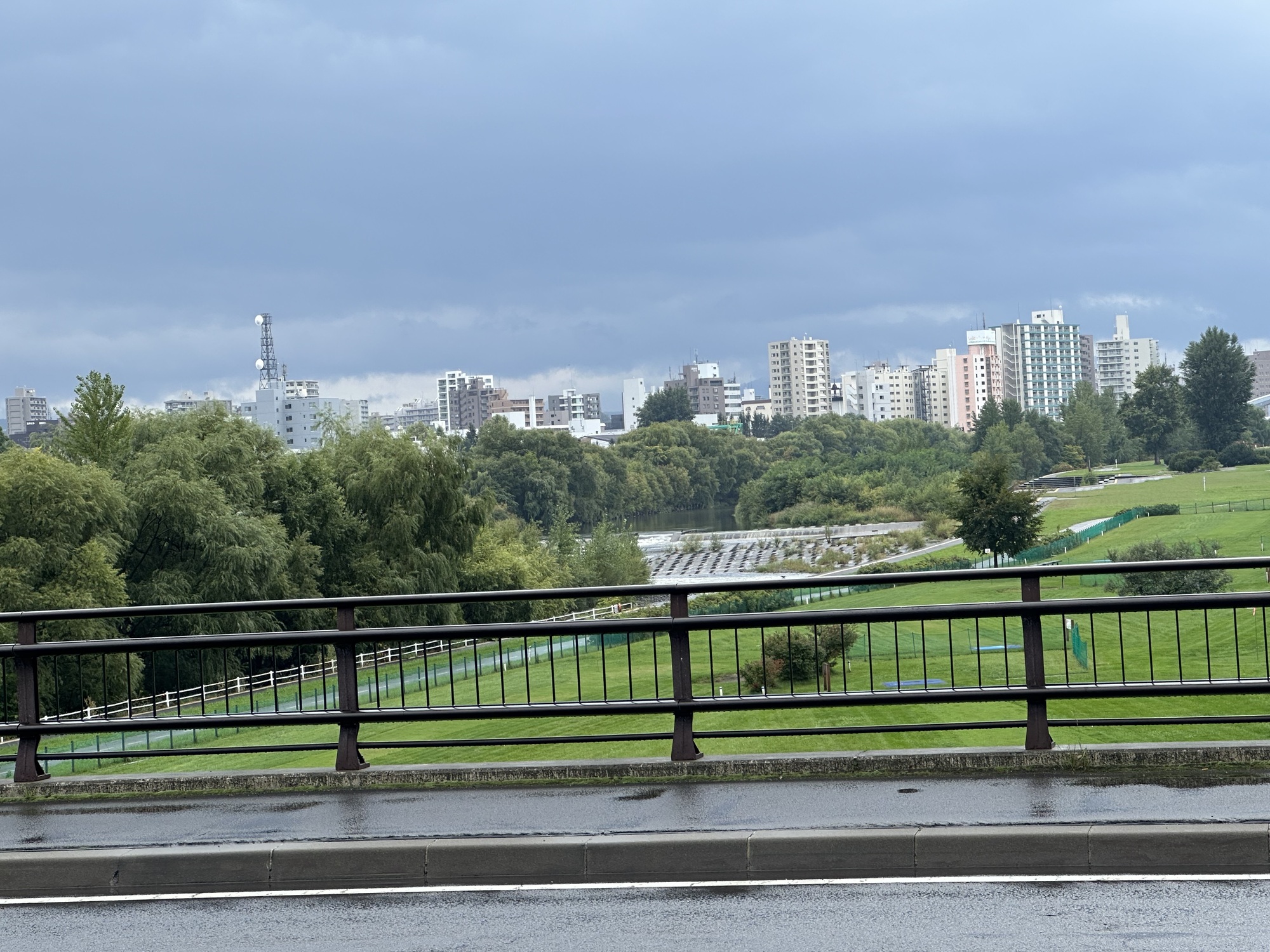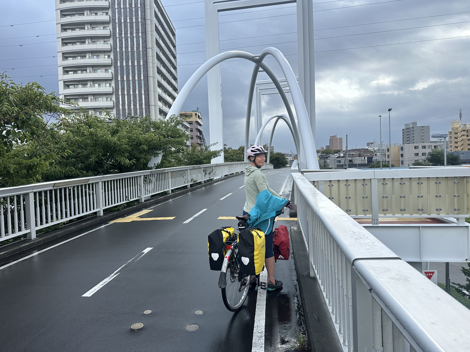 A few zigzags through Sapporo streets and we found our way onto the cycle path, and that was it for navigation for much of the morning — after that it was just gliding along the green, tree-shaded corridor through the city, nodding greetings at the residents out for morning strolls.