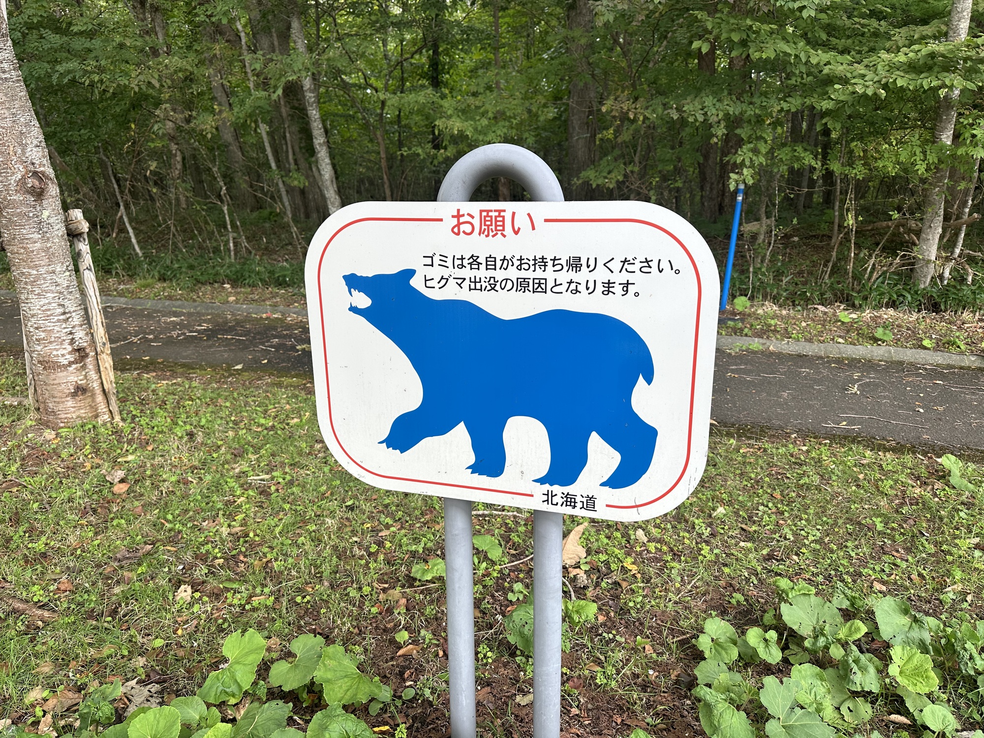 We ended the day’s ride back on cycle paths, this time through Shikotsu-Toya National Park. These were also nicely paved and leafy, like the paths in the morning, but they were overhung by some type of tree that apparently drops branches frequently. So riding underneath them was an obstacle course of dodging fallen branches, stopping occasionally to pull out sticks that managed to wedge themselves between our wheels and mudguards.