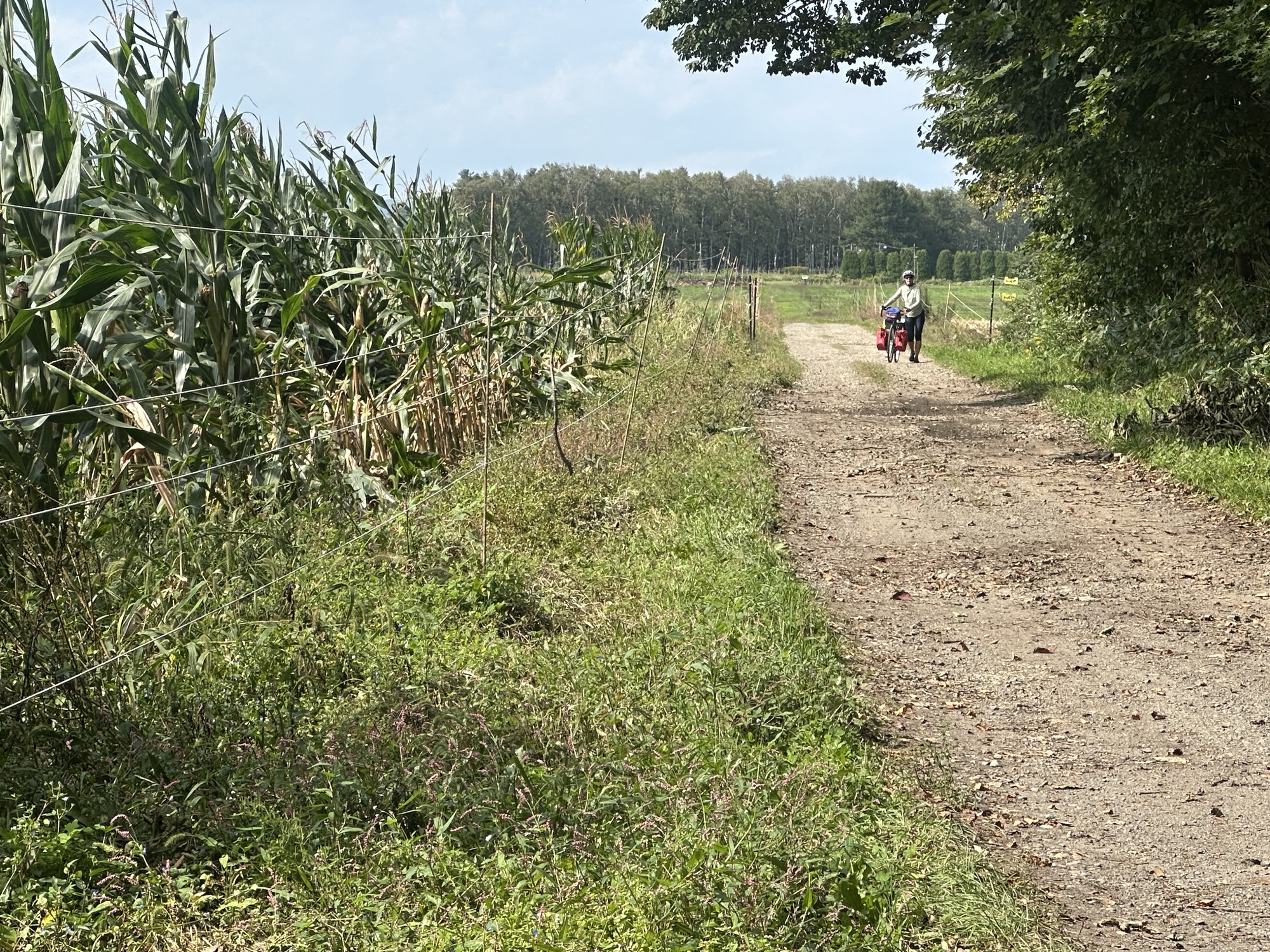 So, not very surprised by that response, we started looking for a way around the base. but it was quite large and sitting just where we wanted to go. Frustrating! Our detour took us right through cornfields and farmyards, but eventually we got back to regular roads that seemed to be taking us in more or less the direction we wanted.