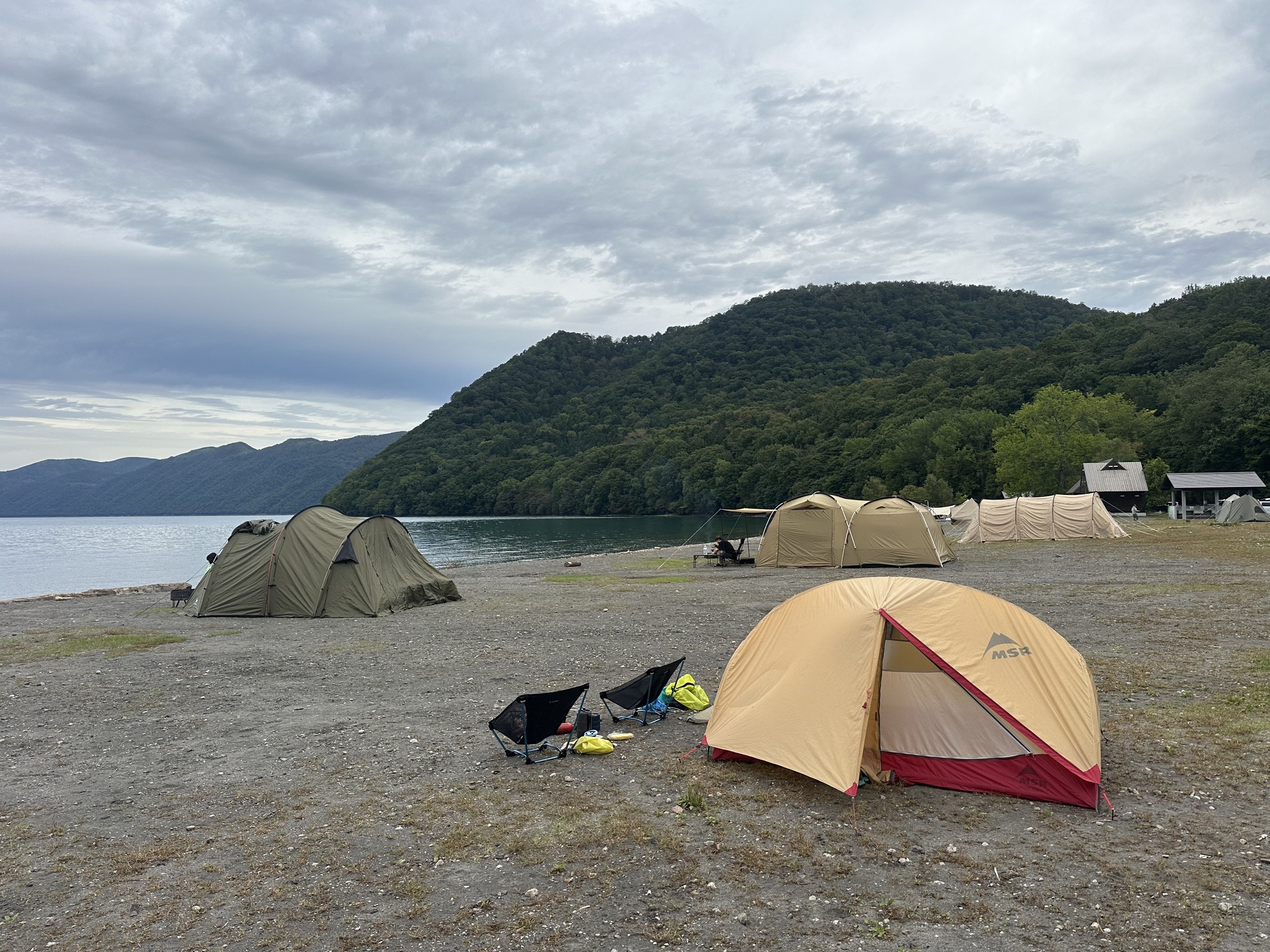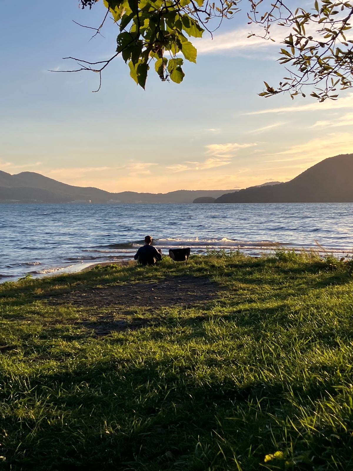 Morning at Lake Shikotsu was grey and cool. Given the number of young people in the dispersed camping on the beach, the evening and night were pretty peaceful.