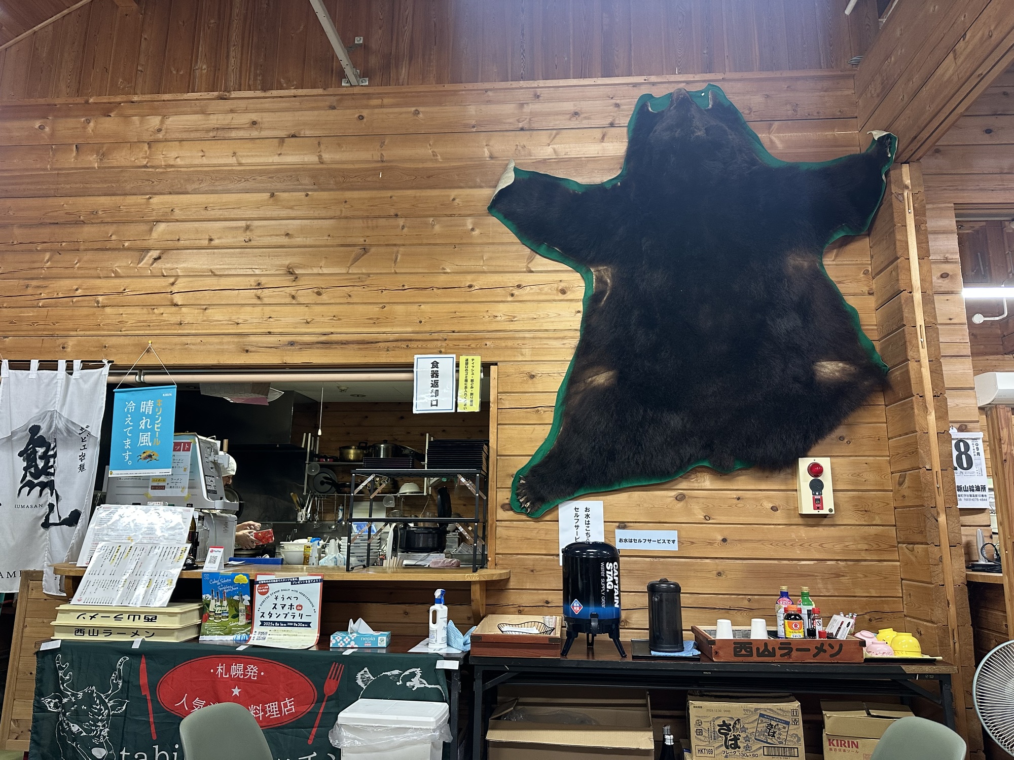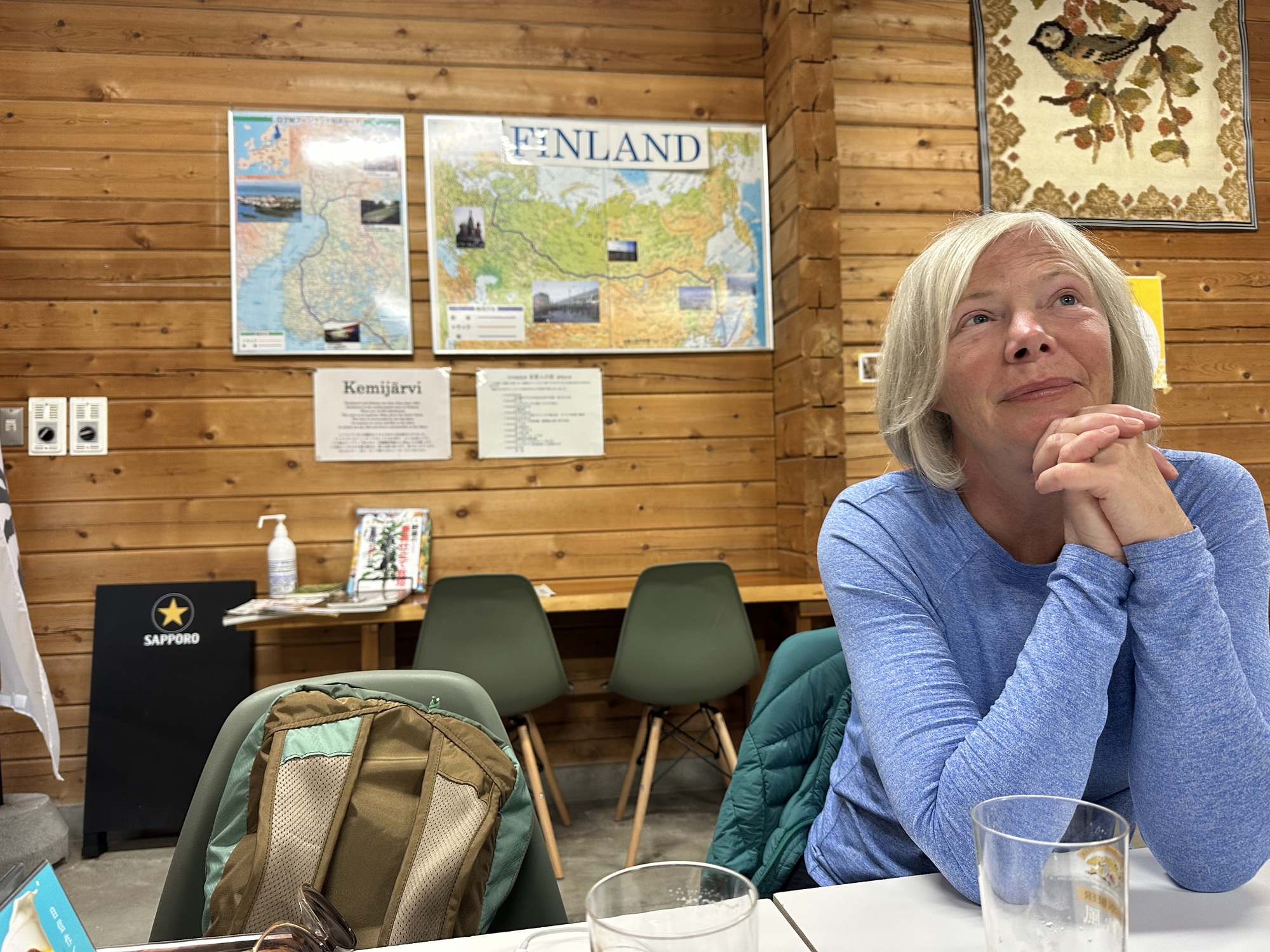 The restaurant and onsen had a hunting lodge vibe going, and oddly had a number of maps of Finland on display (they have a sister city in northern Finland it turns out). The restaurant itself featured deer: deer ramen, deer curry, deer gyoza etc. Certainly Japan has an adequate deer population to sustain this. We can report that the deer curry and deer sausage are delicious.