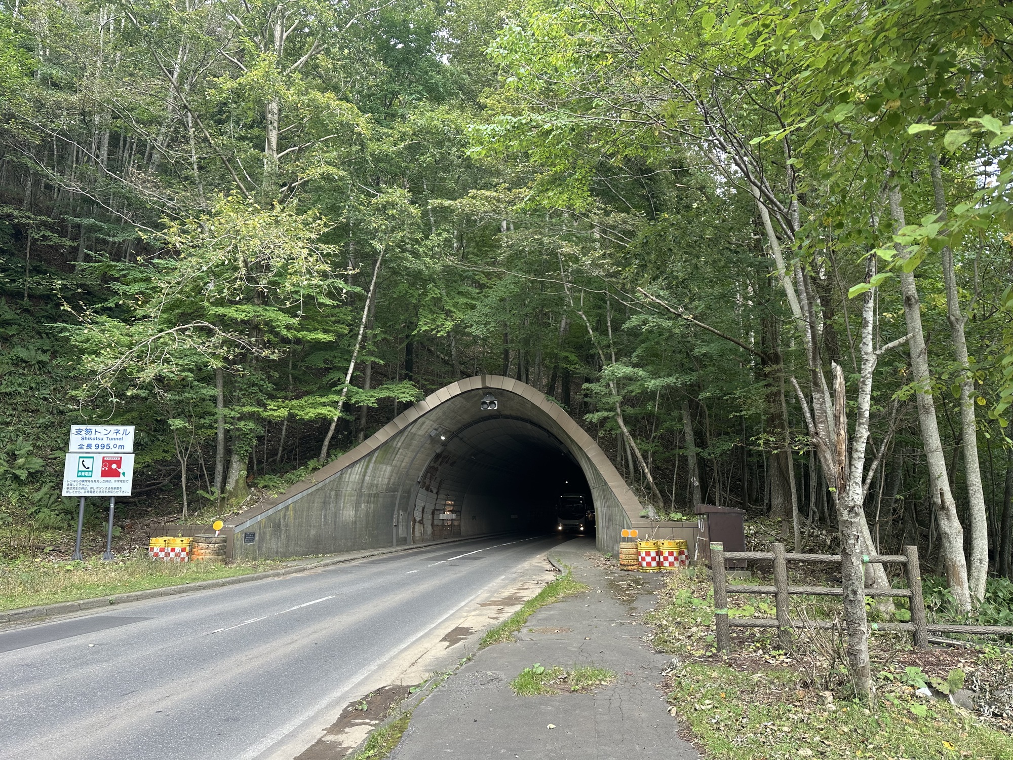 In any event, on we climbed. Some of the views were absolutely spectacular, but we had no opportunity to appreciate them, as we had to focus on keeping steady in our tiny lane. Finally we came to the third tunnel. The sidewalk was wide enough to walk on — barely — but not ride on. So we skittered along what turned out to be a kilometre and a half tunnel accompanied by the roar of truck traffic. -10/10, did not enjoy.