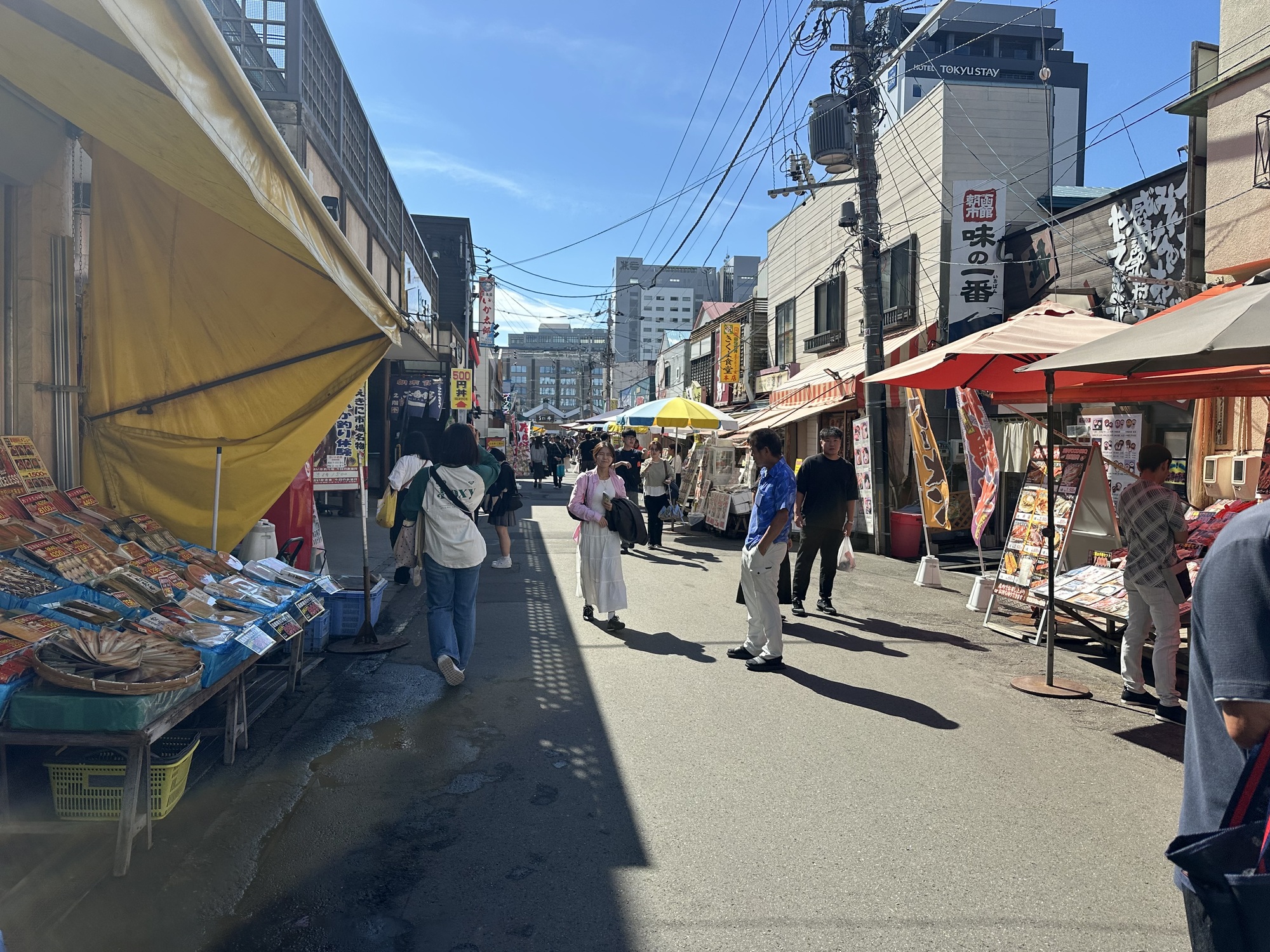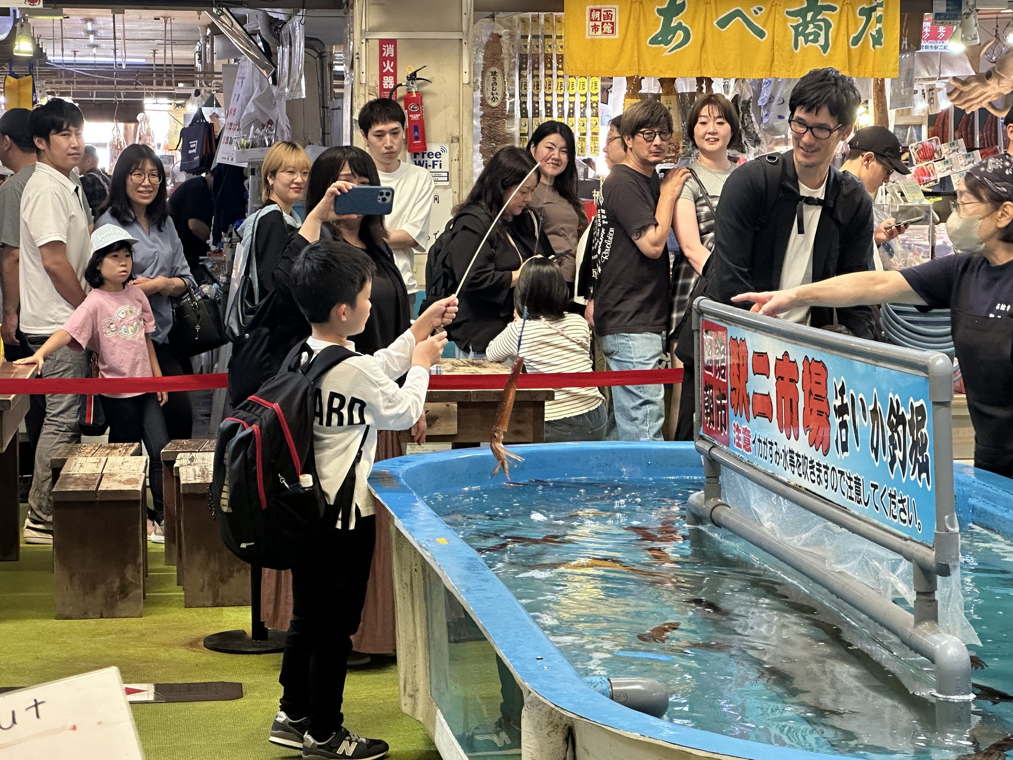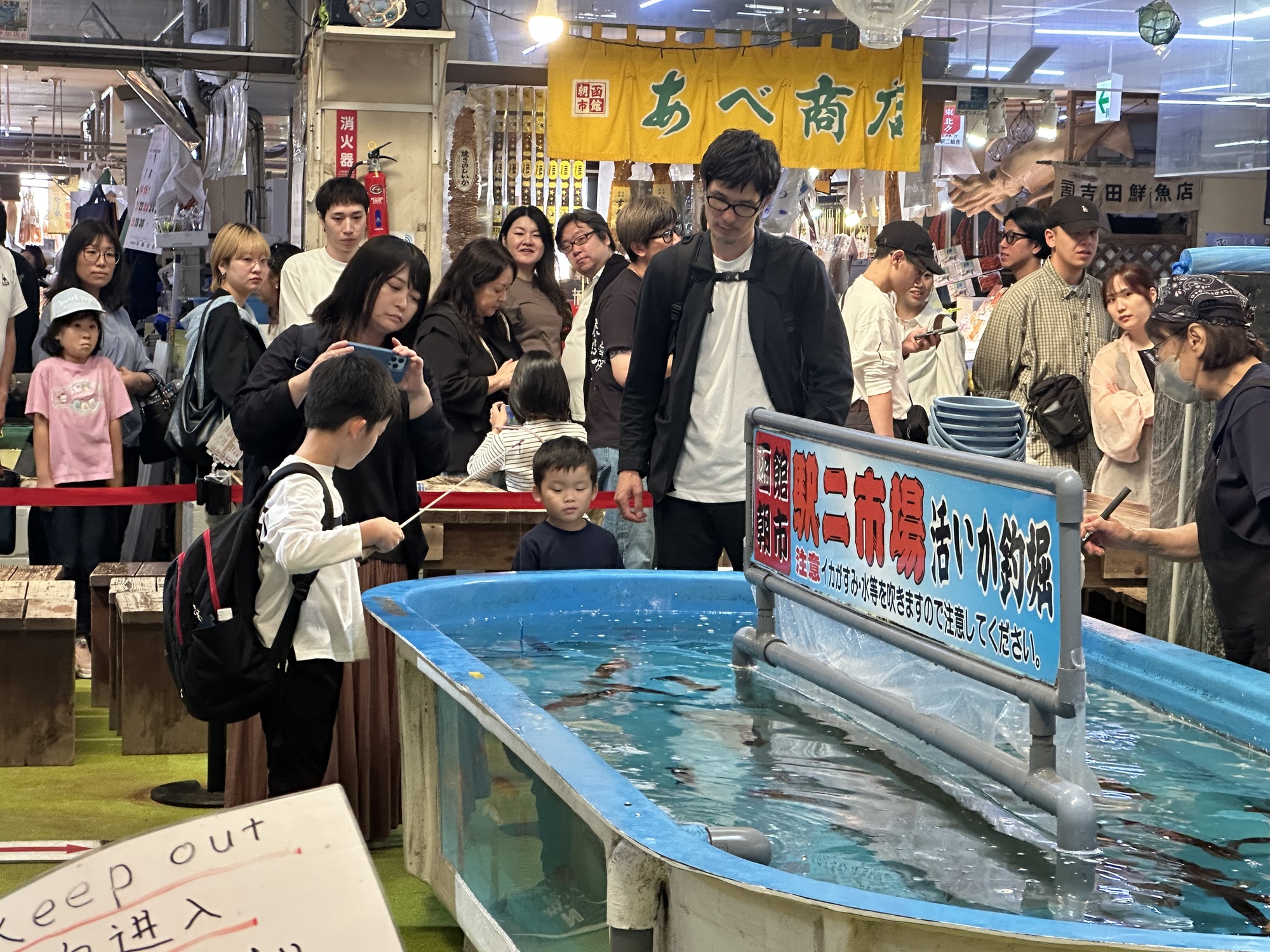 We headed off to see more of historic Hakodate, boarding a charmingly slow and rickety trolley car, which despite the retro feel seemed to be actual public transportation, not just for tourists. It delivered us to the local morning fish market, full of tiny stalls and restaurants. Here the local speciality seemed to be squid, with one restaurant even offering customers the opportunity to catch their own from a big swimming pool filled with squids of varying sizes.