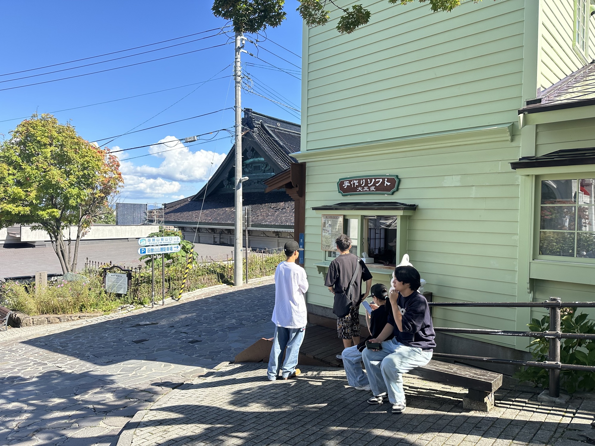 A day of sightseeing and errands in Hakodate was ahead of us, so we made sure to fill up at the breakfast buffet (as our kids will tell you, we are in general opposed to long lunch stops — or really any lunch stops at all — so a big fortifying breakfast is needed). An exciting innovation was introduced to us at this hotel buffet: an automated pancake maker. Batter was squirted onto a little conveyor belt and ran between rollers to flatten it while it cooked. Tom gave it a try and pronounced the results very tasty. There were many topping options— whipped cream, jams, and a bowl of a thick beige substance labeled “peanut cream” which tasted like the center of a filled peanut butter sandwich cookie. Interesting, but I think it’s unlikely to win out over maple syrup.