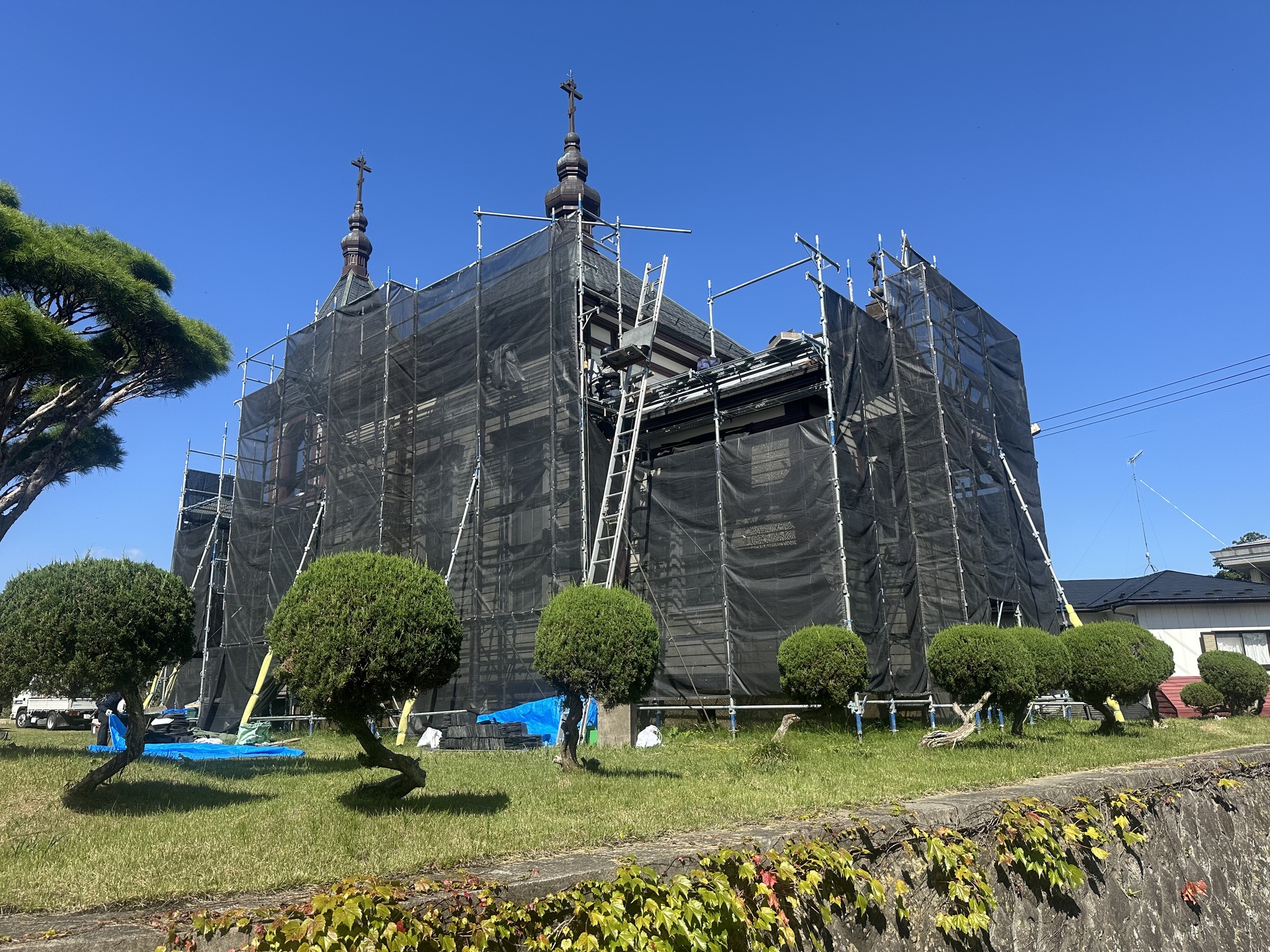 OK, that’s it for today’s episode of Marilee’s random thoughts. I will leave you now with the one photo we took today, which was also pretty random: as we were biking through a little town I noticed a church spire in the distance. It was an unusual enough sight that we went off to investigate and came across a Russian Orthodox Church, apparently in the midst of extensive restoration.