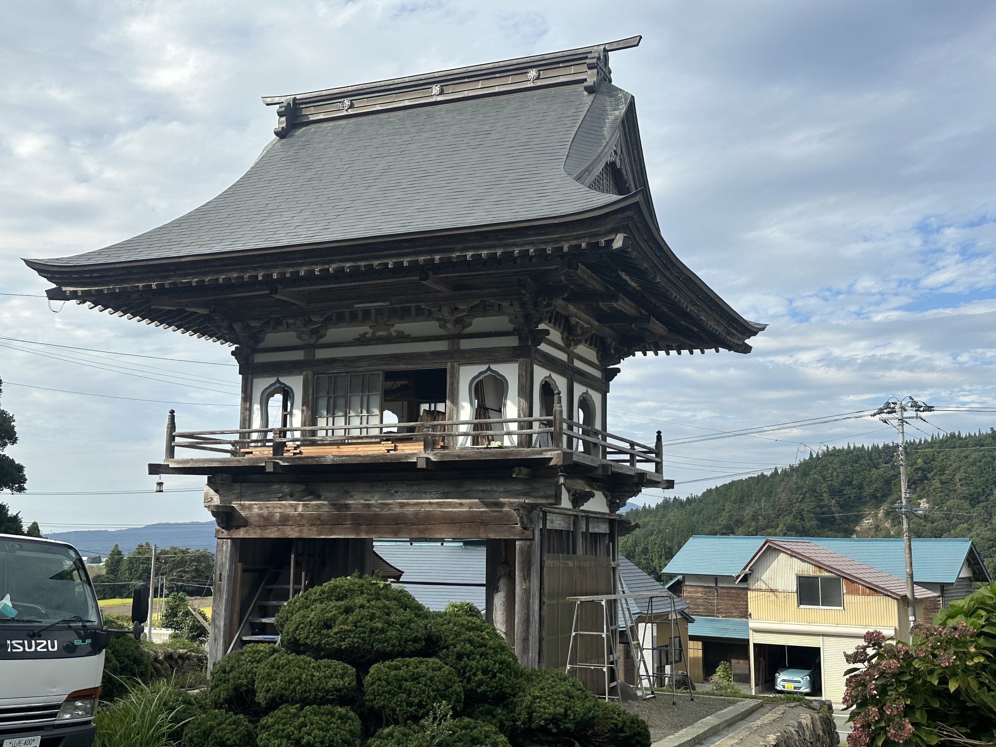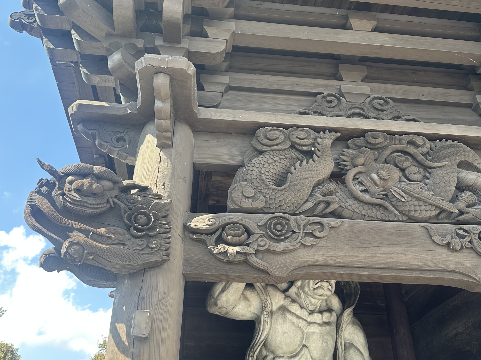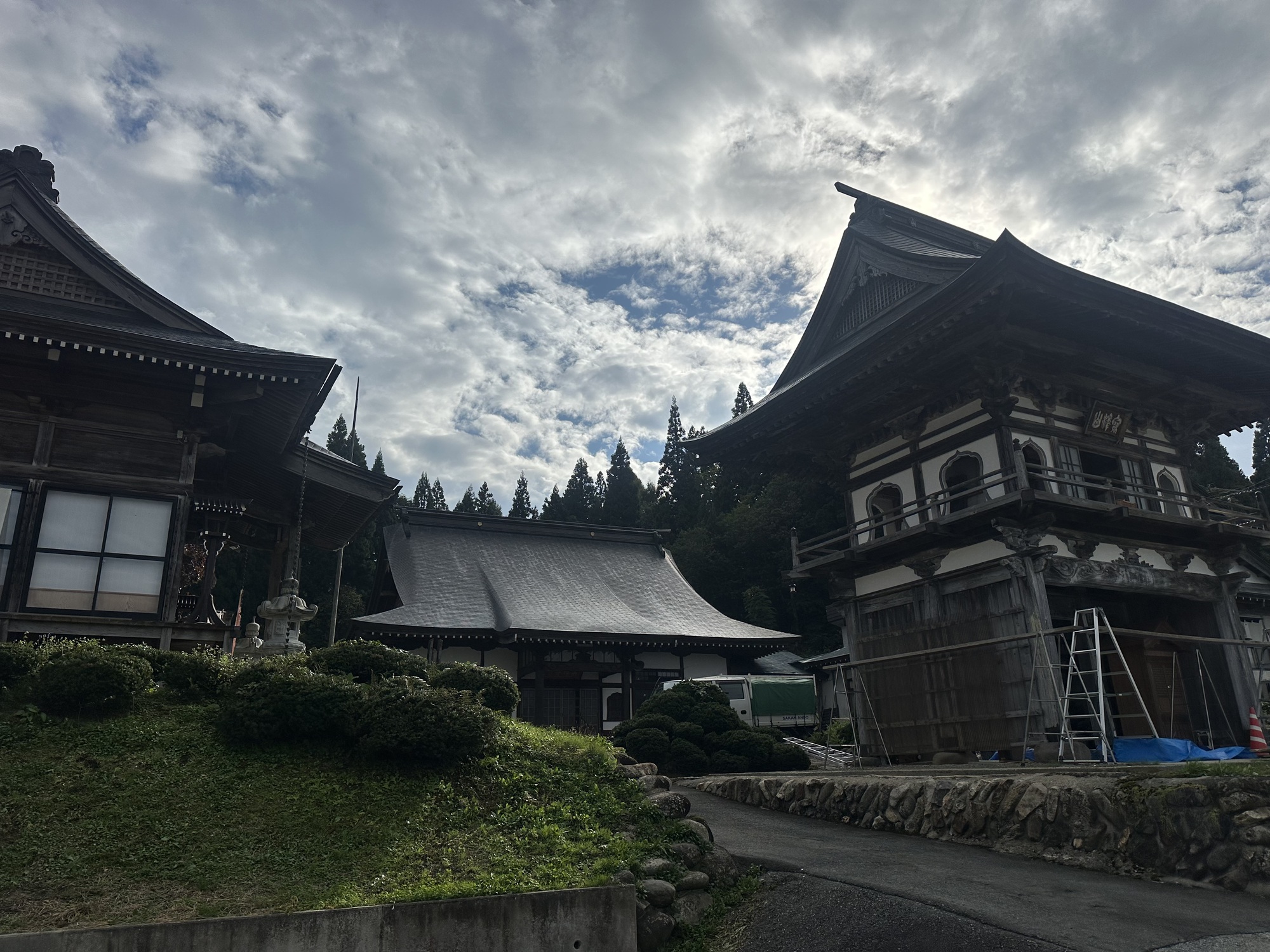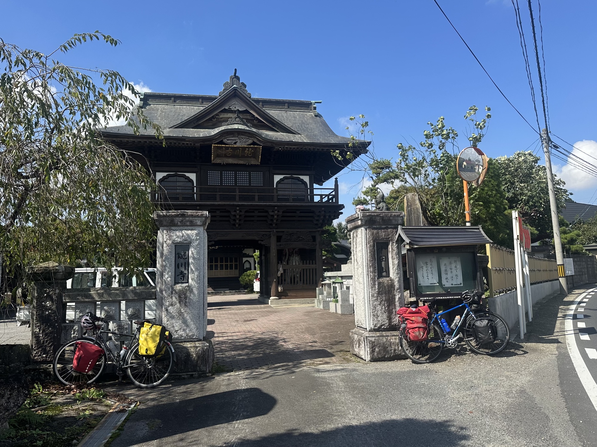 As Marilee mentioned in the last post, we’ve been noticing that in Honshu, and increasingly as we’ve been getting further south, that there are more older buildings that remain standing and that have been kept up. In addition, newer buildings seem to have incorporated more traditional designs. Certainly makes for more interesting riding. In addition, we’ve been seeing a LOT more temples and shrines than in Hokkaido. Small shrines dot the landscape, with the occasional larger temple popping up during the ride. We did stop for one larger temple this morning — a good excuse for a quick break to look around.