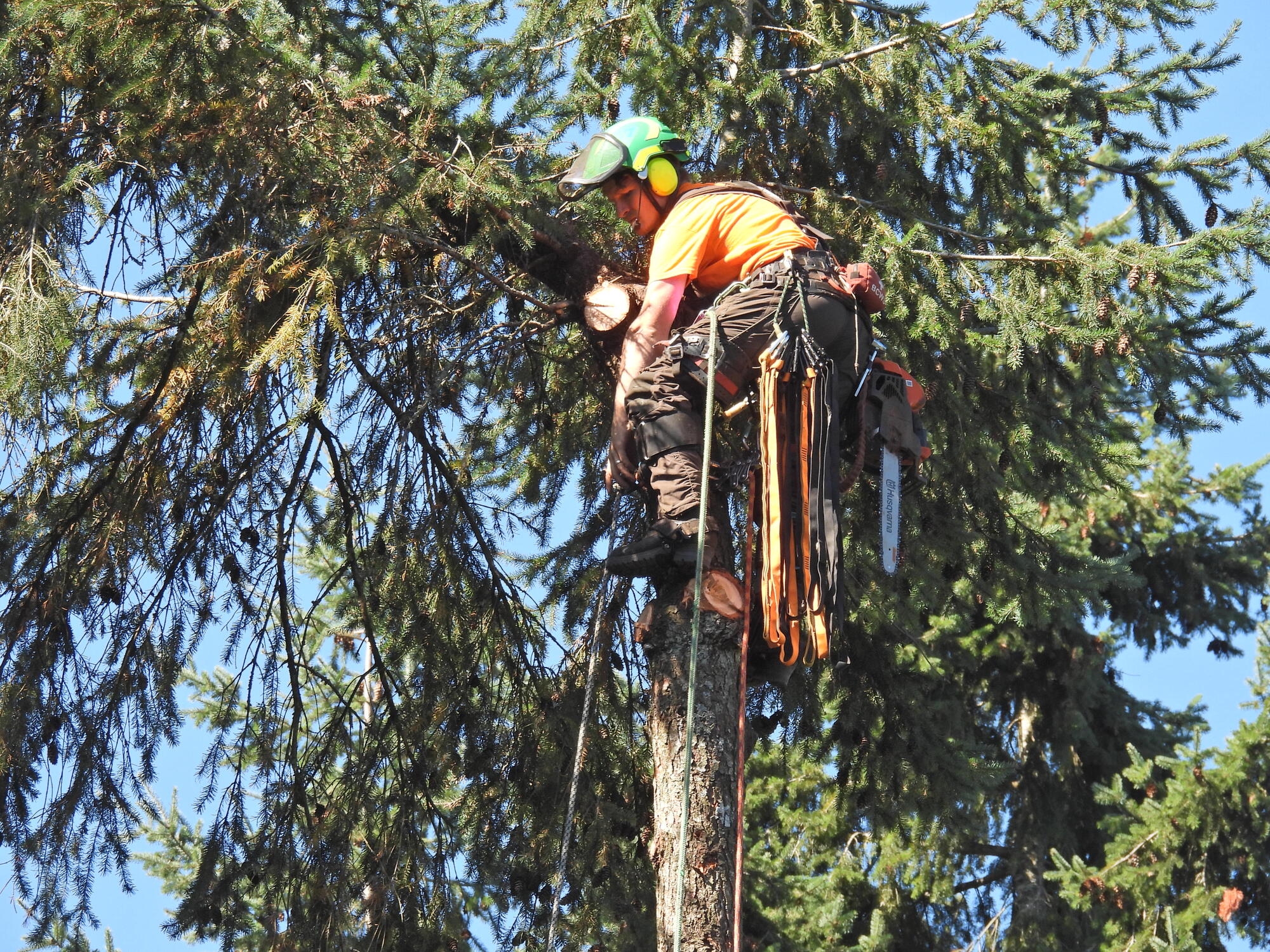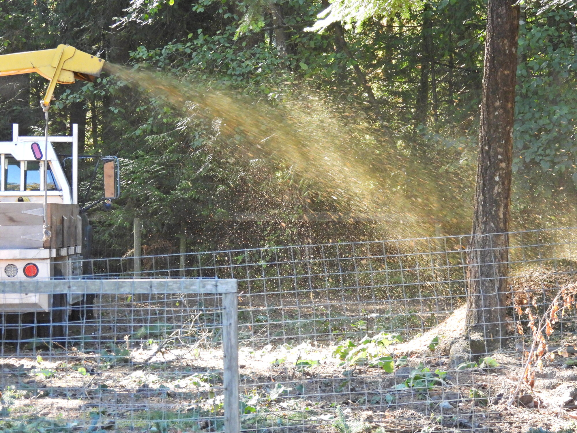 And then we noticed one of the giant trees that inhabit our island and farm taking liberties about leaning on a barn. In so doing it joined about a dozen others, either dead or leaning. It was time to call in one of the several arborists that handle trees like that in our area. We chose a new one, calling his business Tree Beard in a nod to Lord of the Rings. Each of the arborists is remarkable, as they climb very tall and scary trees and take them down in pieces. Tree Beard left us with very many pieces.