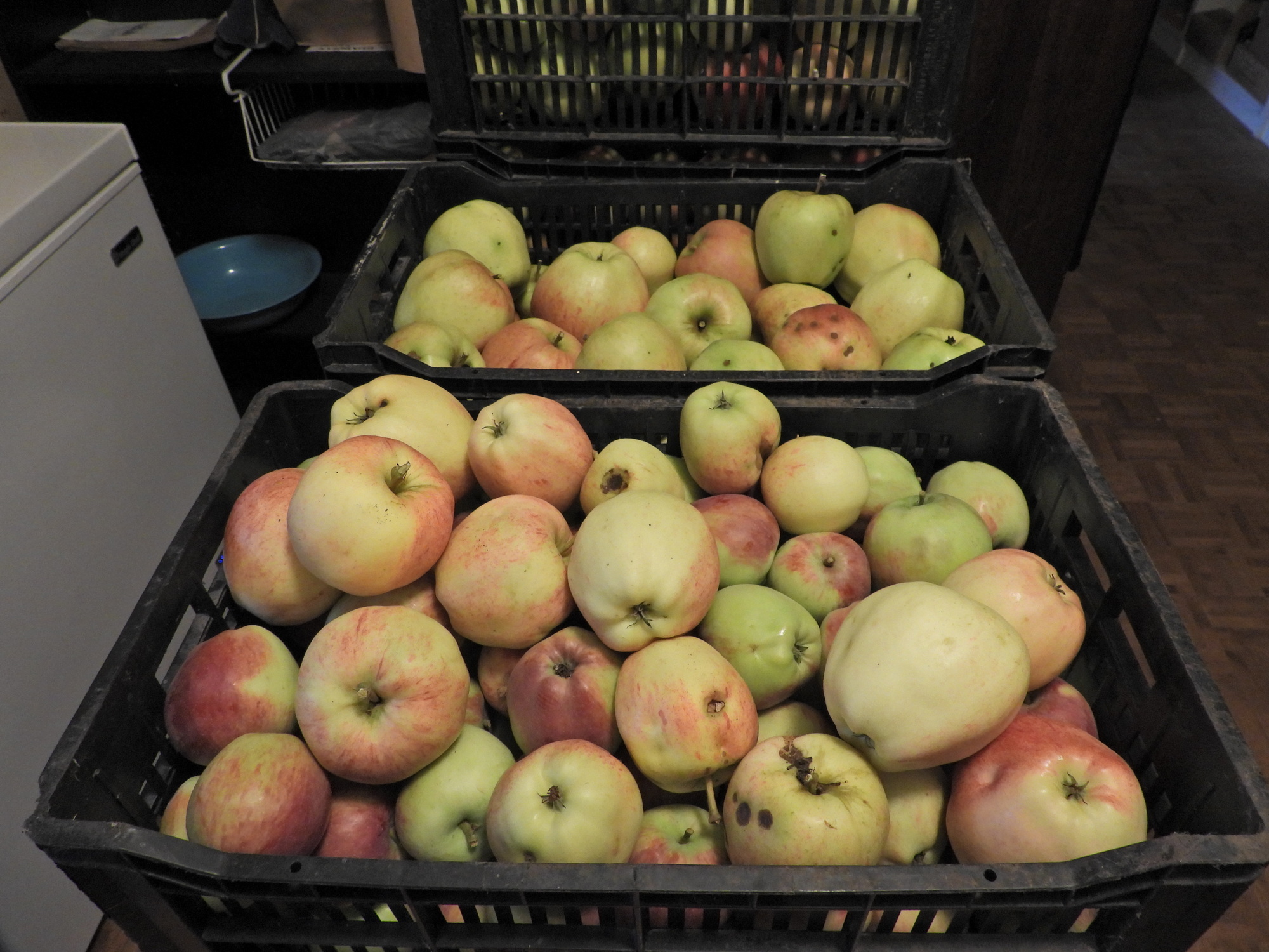With the wood all stacked, the question then became - now what? Ok, we invited the Paxman's to come and help pick apples. And we also invited Jo and Karla (visiting from Leipzig) and Marius and Sandra and baby Ferdinand to come and make juice.