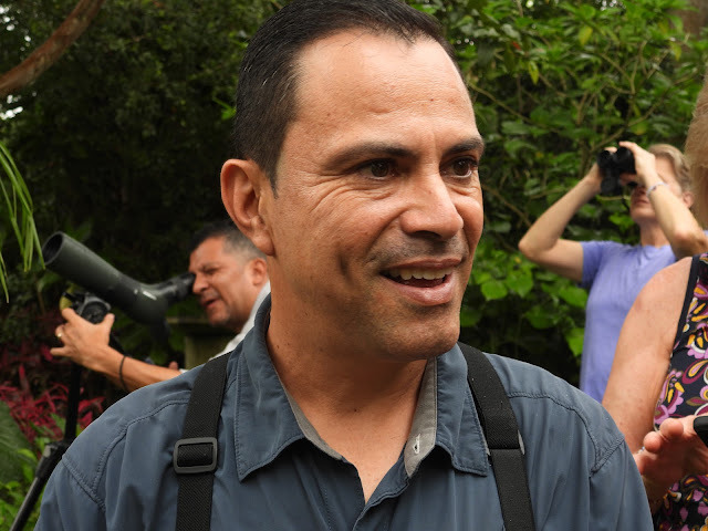 Alex's skills were not limited to spotting and instantly identifying hundreds of bird species. He also regaled us with mini lectures on Costa Rican ecology, industry, transportation, agriculture, food, and sociology. I wondered where he had studied, to know all this, and asked about it. He referred to training courses required of all guides, who are licensed by the state. Later, I did spot his bio, and there was university training behind it as well.