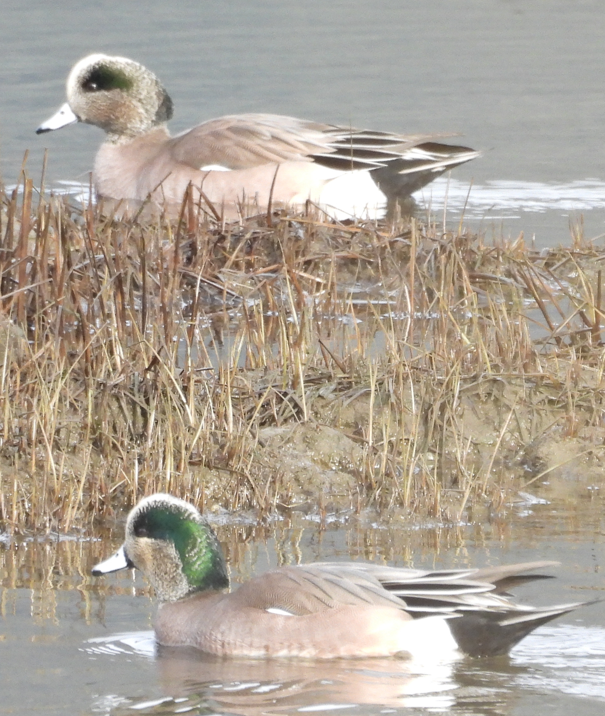 On the winter flooded Dinsdale fields there are lots of ducks - Shovellers, Mallards, and others, plus Canada and Cackling Geese, and Northern Harriers patrolling overhead. The hedging along the dike top harbors small birds, Juncos, Golden Crowned Sparrows, Anna's Hummingbird, and many others. So far this year we have spotted over 30 species in this general area.