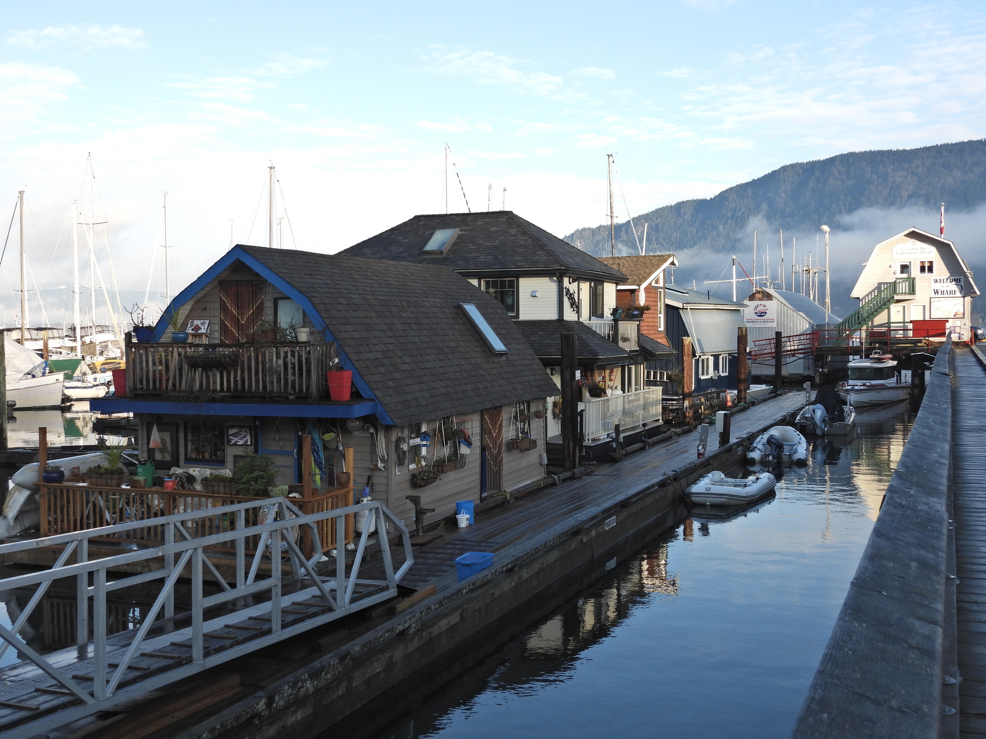 The village of Cowichan Bay is very scenic, with many float homes and moored fishing and pleasure boats.