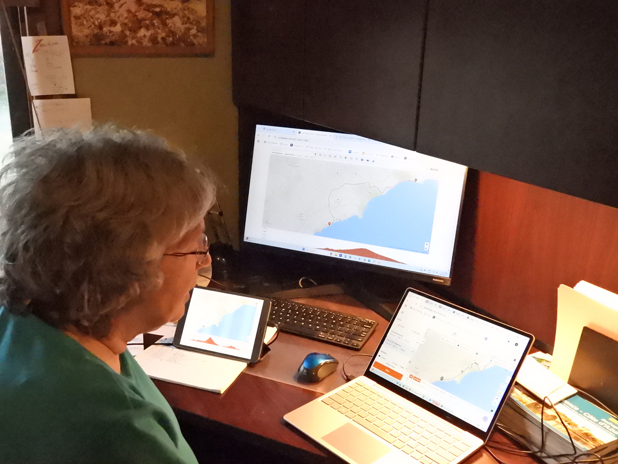Bonus story: Maybe through too much staring at screens, Dodie developed an infection in one eye. (Oh,oh, Scott's vision story is much on our minds). We took her to the optometrist and discovered that they could only see her in a few days. So we went to the pharmacy and got an antibiotic eye cream. Arriving home, we had a call from the optometrist - they found an opening, more or less right now. So back we went. They prescribed a different cream, and a program of lying with a heated black pad over the eye, three times per day. As I write, the eye seems to be improving. But there is a silver lining to the story. Waiting at the doctor, the pharmacy, or for the eye pad to work its magic, I had extra time to research one of the glitches that had slowed us down in developing the best cycling routes.