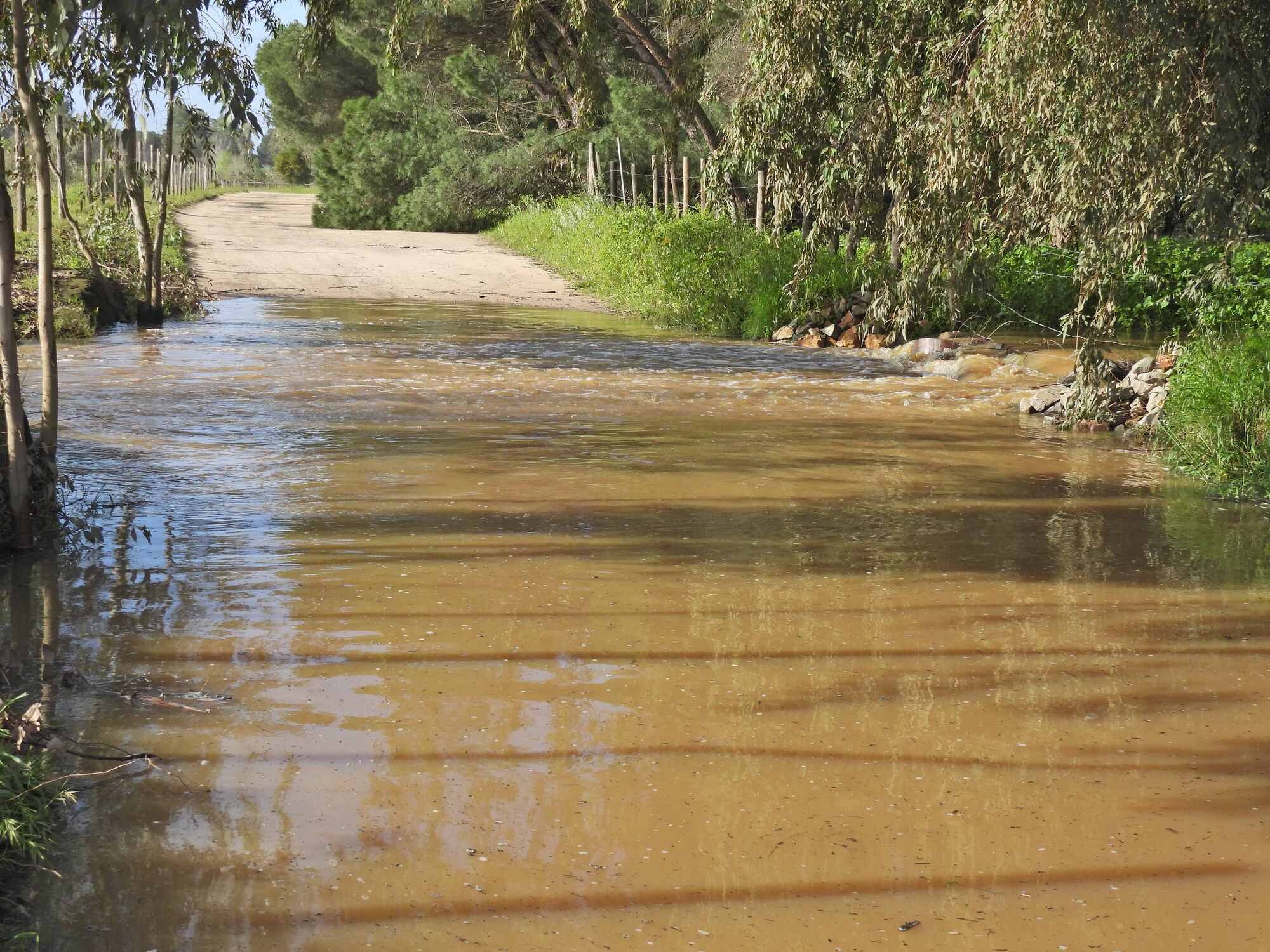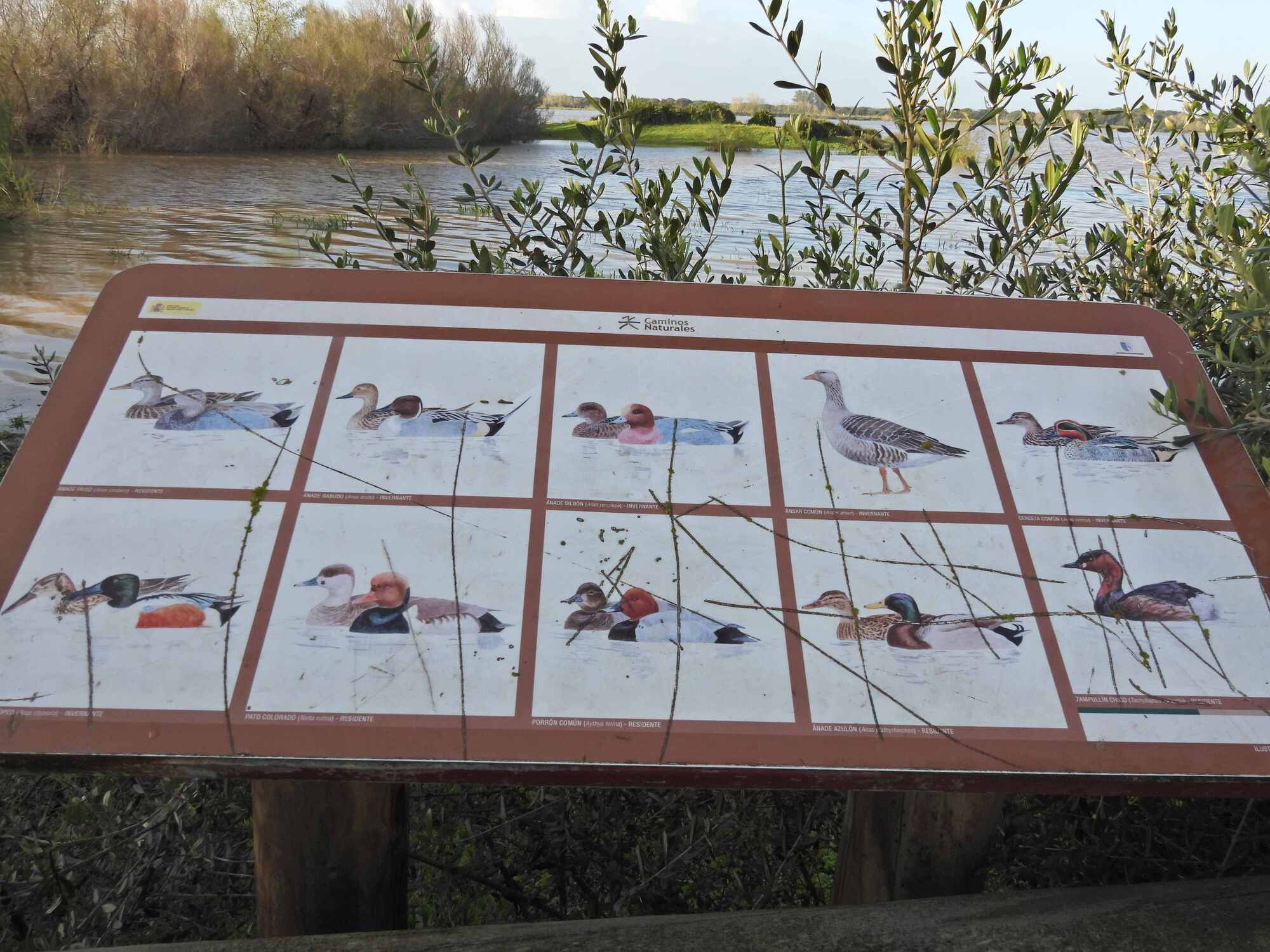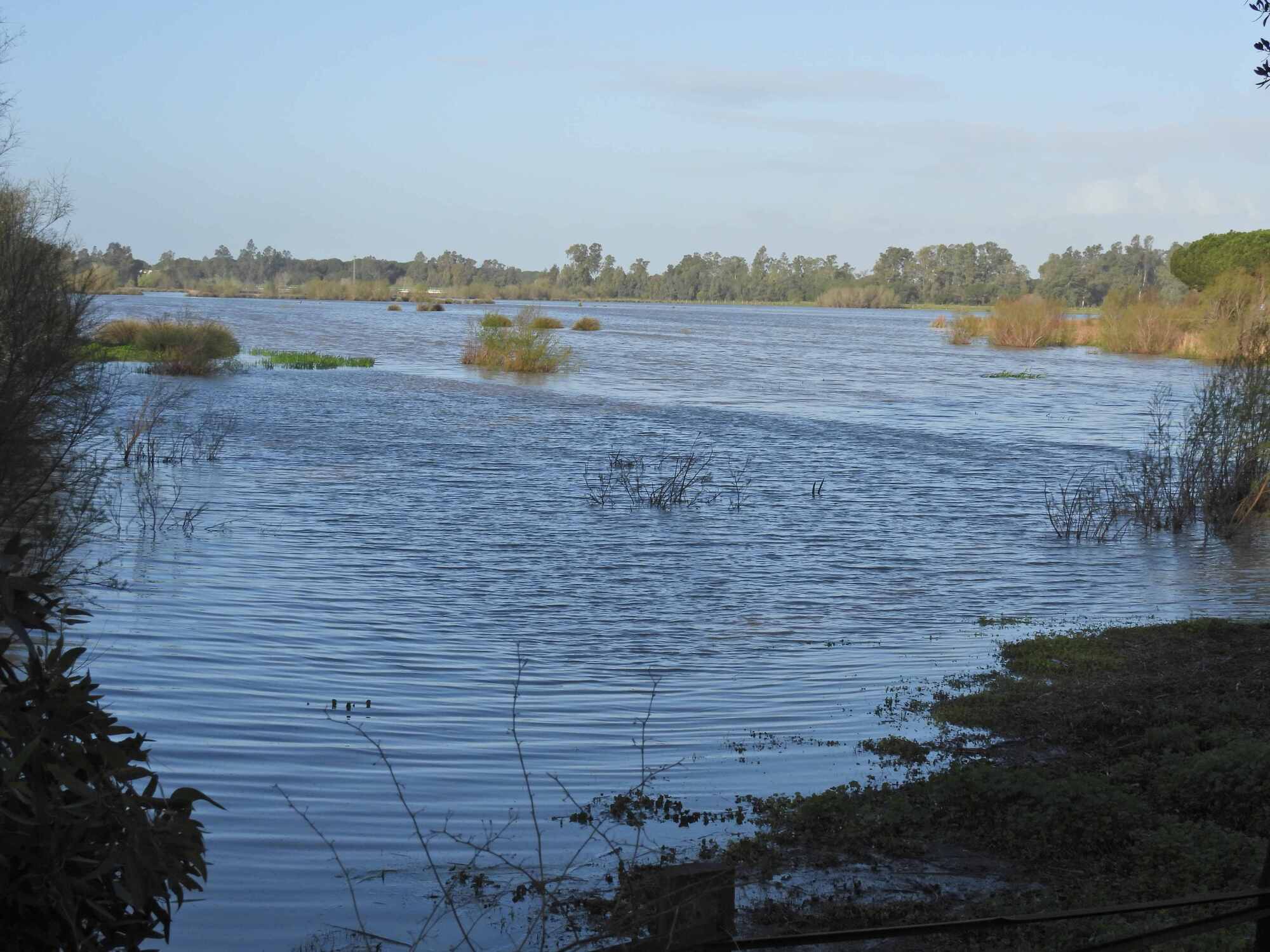 Despite this status of being nowhere, in the huge park, I was beginning to think if the tour guide was too wimpy to take us out, we could do our own tour, right here. That lasted about five minutes, as we came to a place where the Arroyo de La Rocina had overflowed its banks, and was running overland into the lake. Tour over!