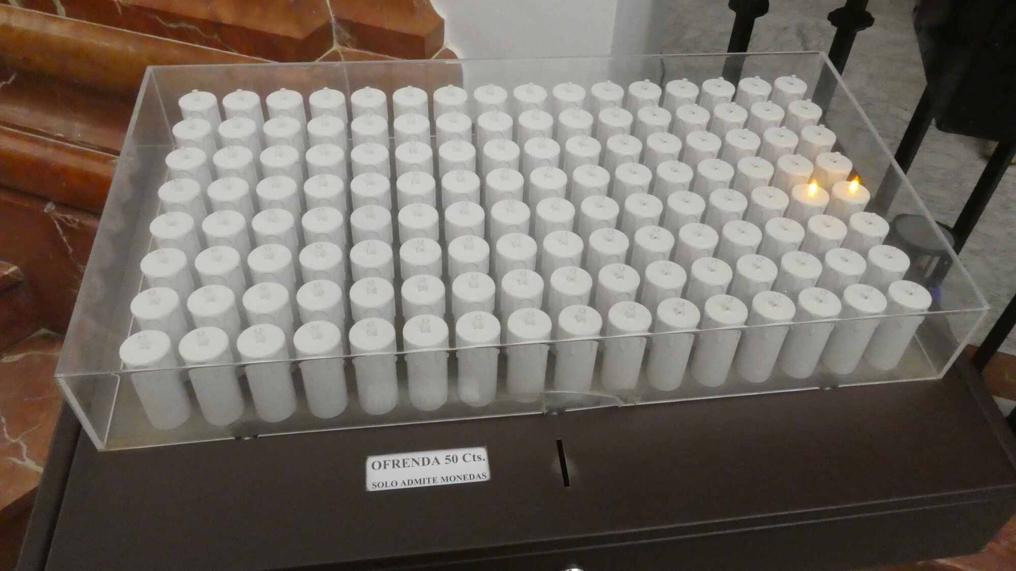 A second off note, to complement the cell phone guy, came from the church's 50 cent candle lighting scheme. The "candles" are not wax but rather led bulbs, and I have severe doubts that they can work as effectively as the real thing.