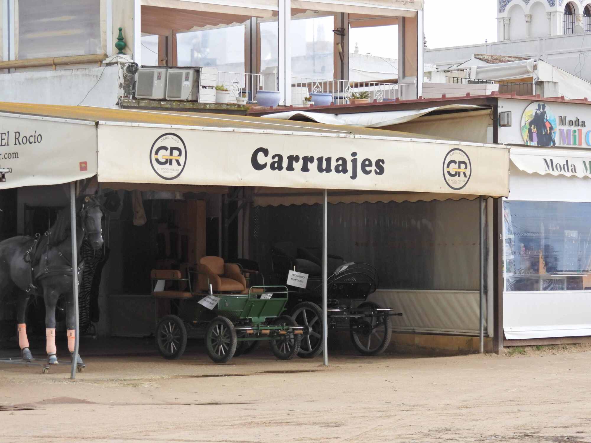 Walking to the church we passed a line of shops and restaurants. One shop was selling horse drawn carriages, a big item here: