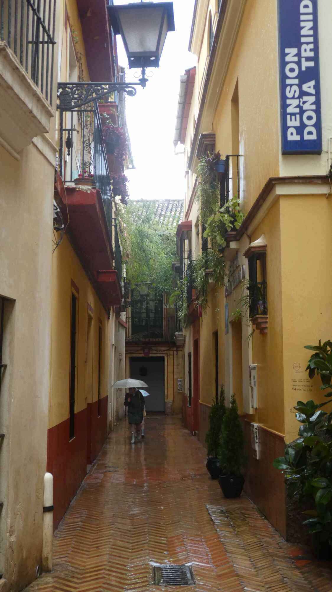 Dodie woke up, with another problem on her mind. Spain had been hit with torrential rains, and these were forecast to continue. To what extent was our track coming up going to be on gravel road, which would now be mud, or water? We had looked at so many potential routes that we no longer knew the source of what we planned to follow today. Only "cycle.travel" has an explicit selection for paved roads only. So I dragged out the big computer (contrary to morning procedure), developed a route to our next stop (Lora del Rio) on cycle.travel and compared it to what we had had. All different! So I put the new route into the GPS phone, something that requires a fair number of steps.