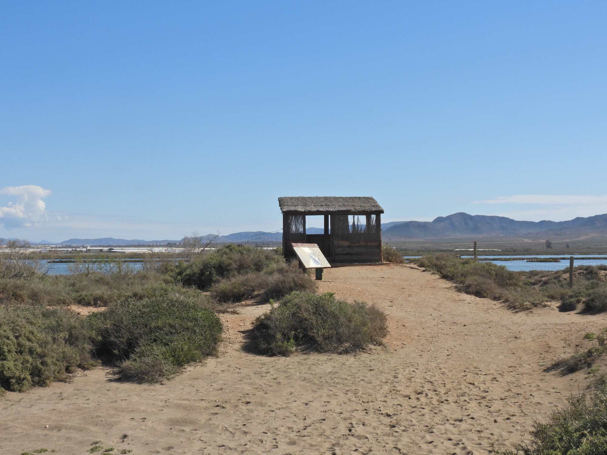 We were excited today, because between us and our hotel at San Jose lay the Cabo de Gata salinas and bird reserve. This consisted of a long lake, just in from the sea, with a road down its seaward side, boasting several bird watching hides.