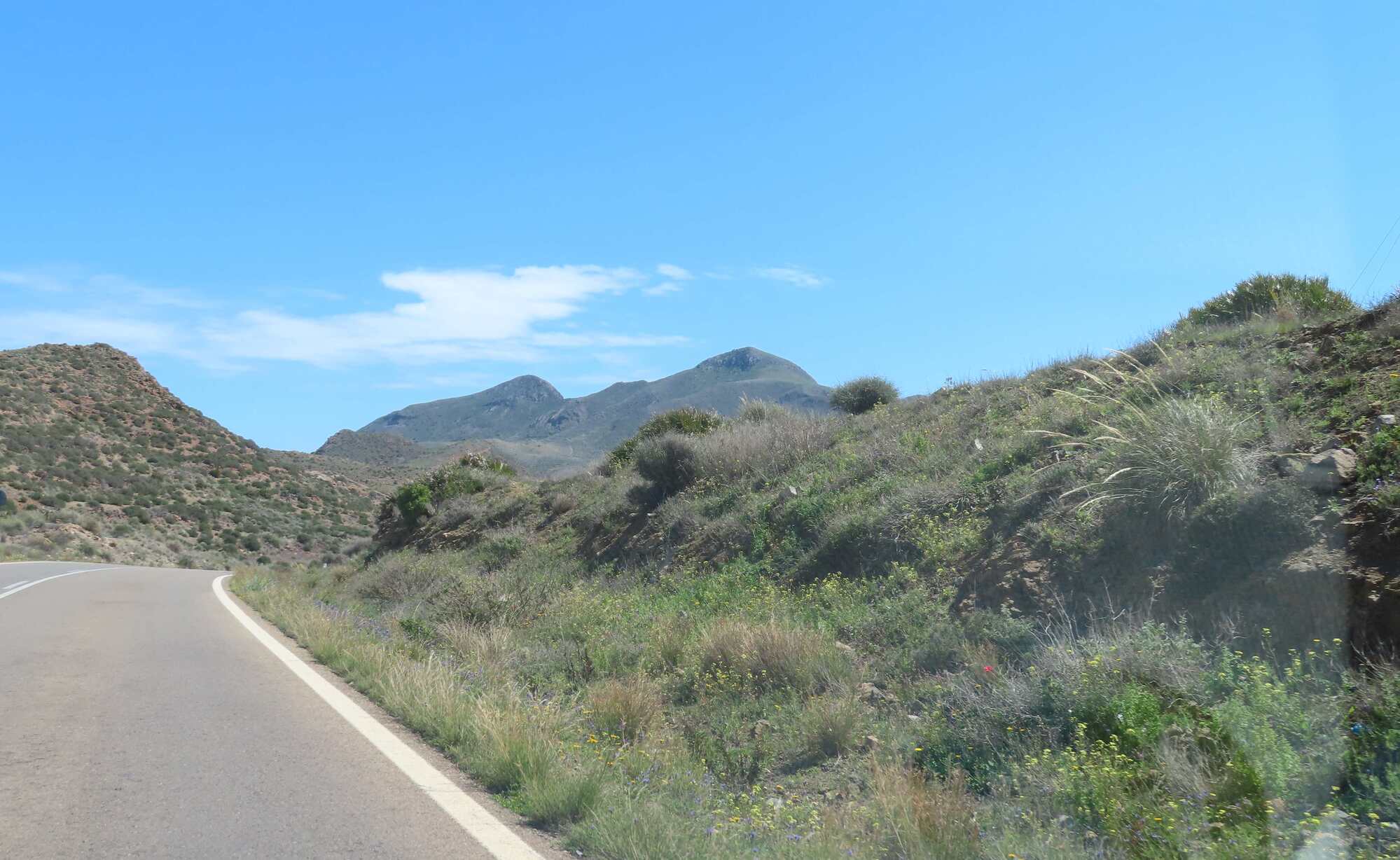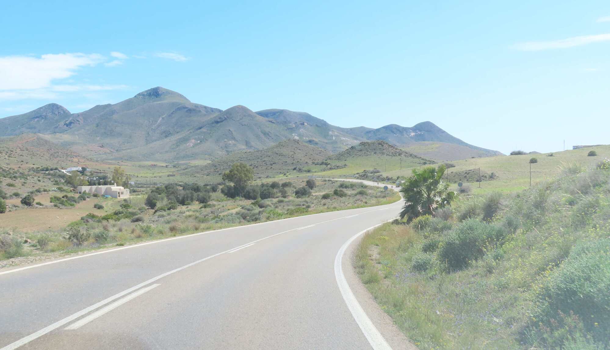 The terrain and weather will remain gentle tomorrow, as we shift to Agua Amarga. After that, we remember the steep cliffs. But the Batmobile absolutely does not care about that!