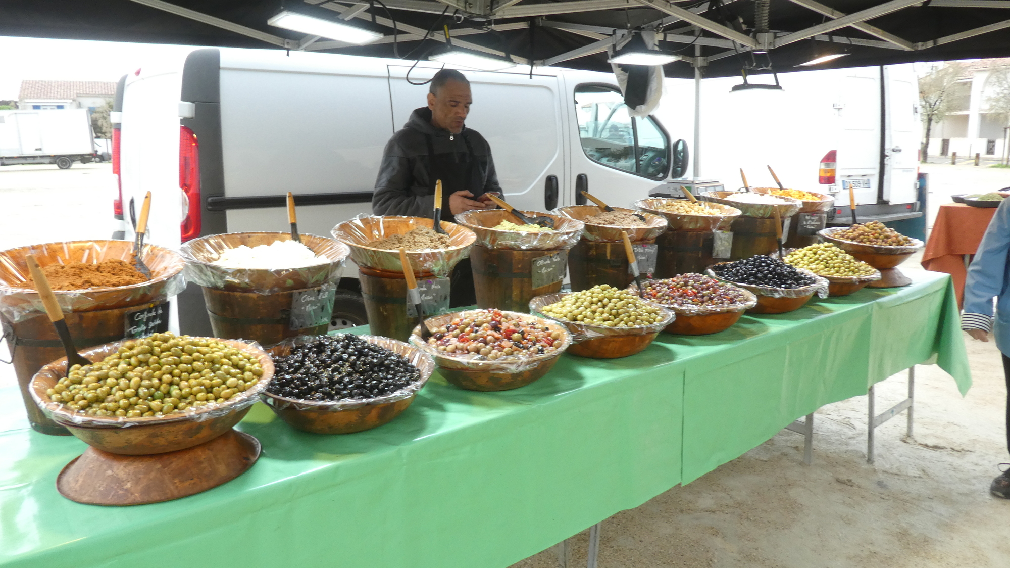 I next had the clever idea of talking to the olive man on video, so Laurie could get a further "flavour" of the situation. Unfortunately the man was camera shy, but at least I got some video of him saying don't do a video.