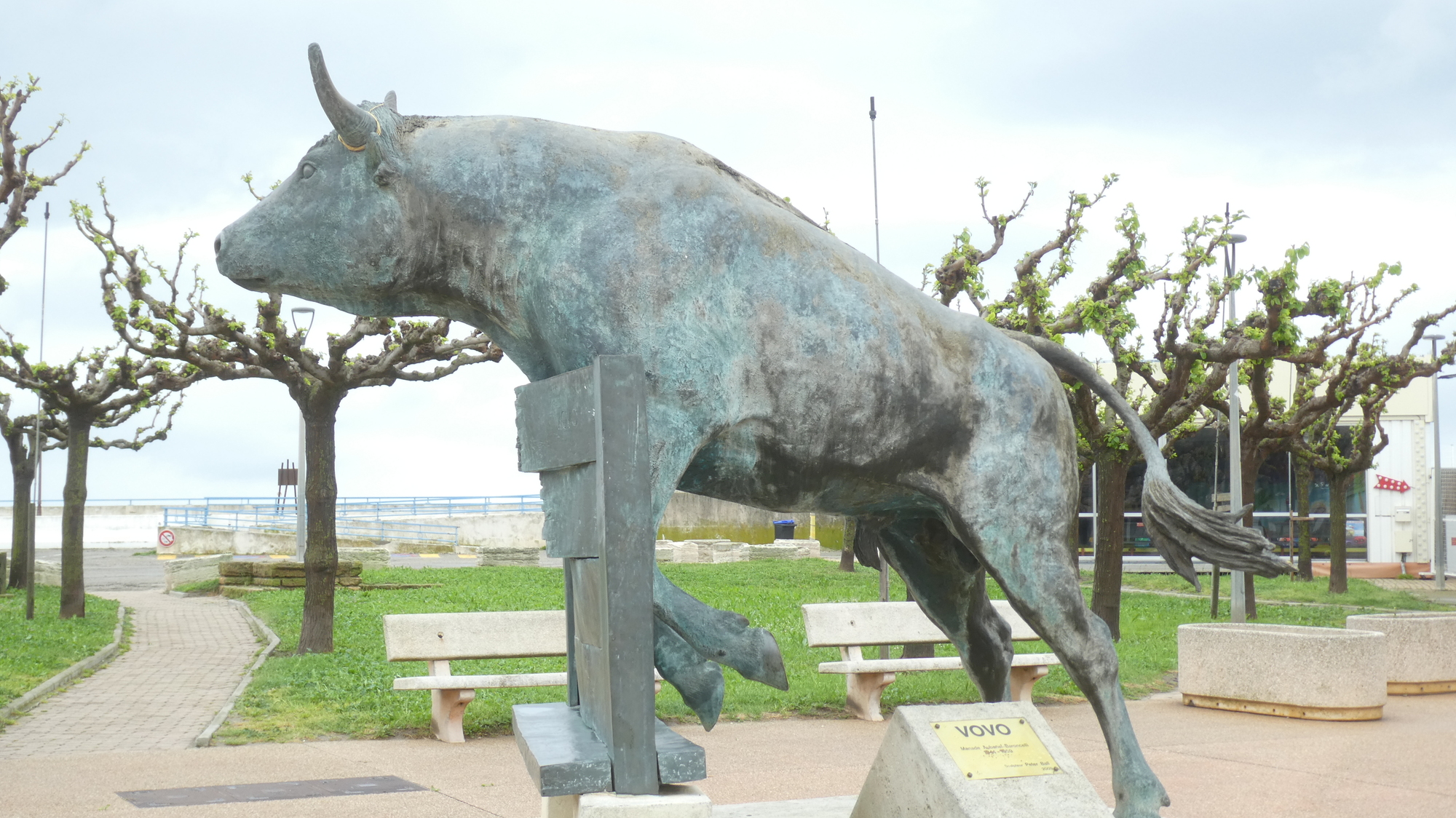 We continued into town, passing by the bullfighting area. Outside are statues of famous fighting bulls of the past.