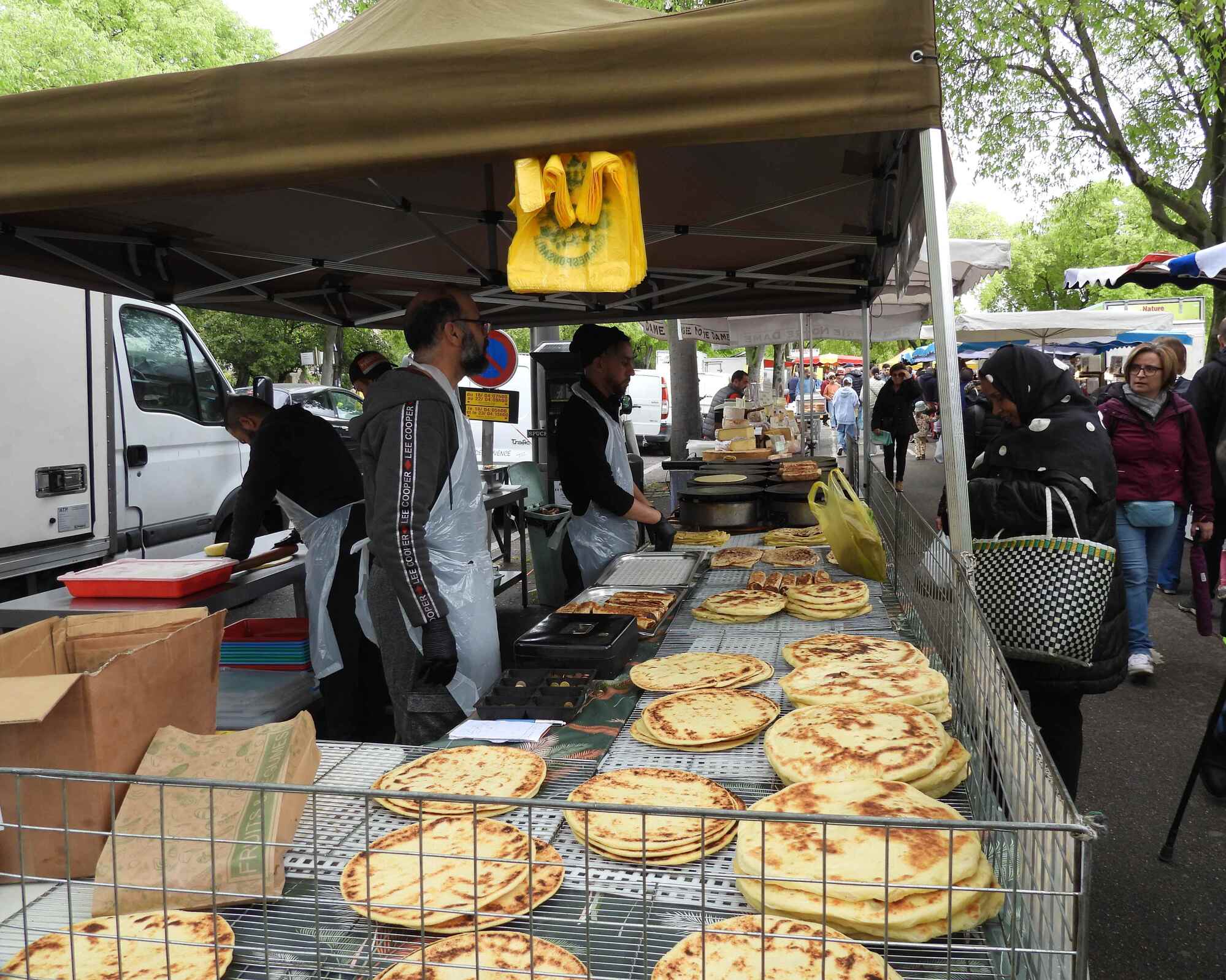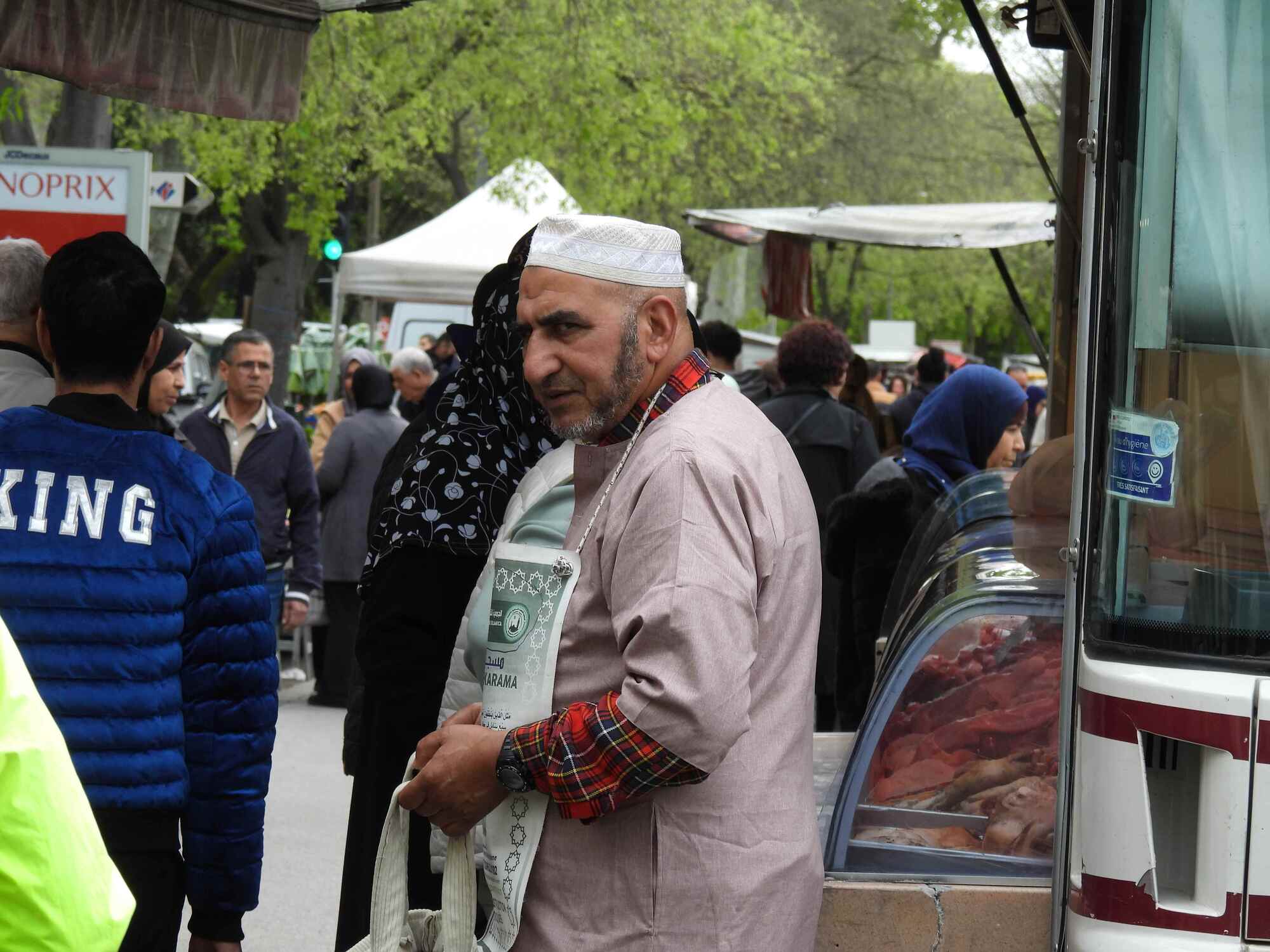 One of the reasons I like the Arles market is that for some reason the city seems to have quite a Muslim population, and they are represented as customers and vendors at the market. Or, I could easily believe, overrepresented. I expect people from Algeria and Tunisia have a fine appreciation of markets, and they also bring their typical foods to the market stalls. If they bring it, we will come!